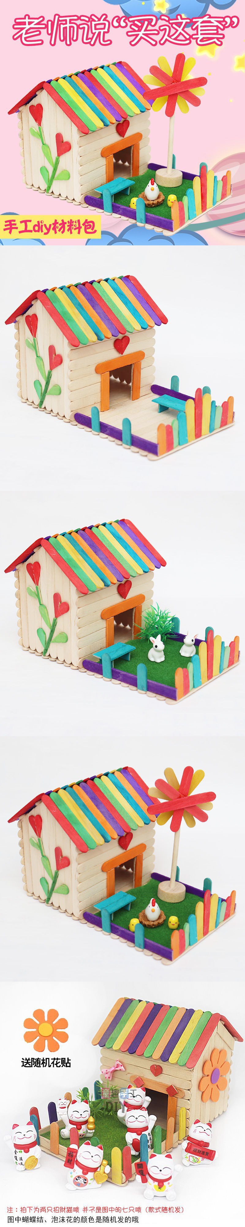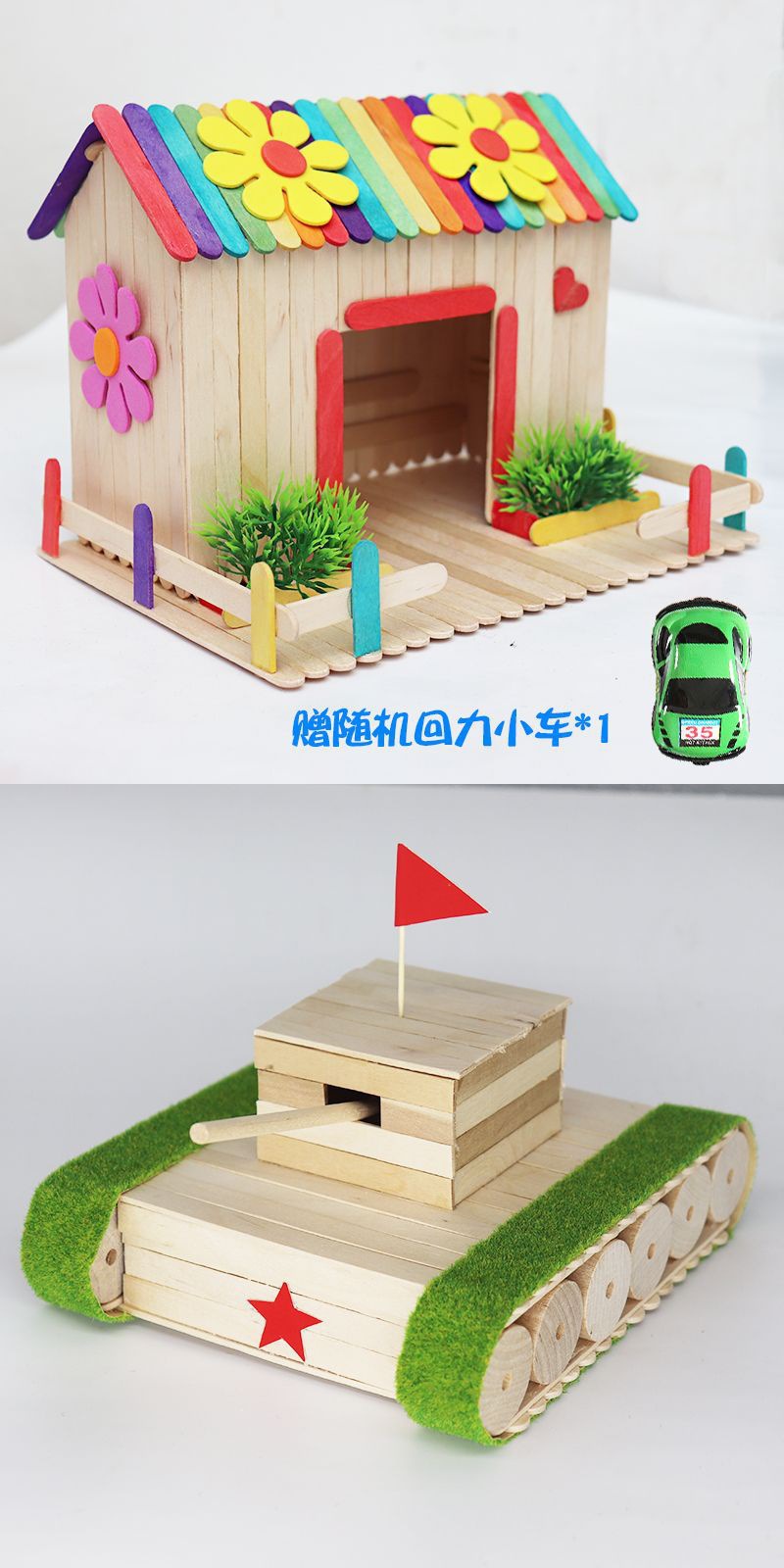 作りの材料はアイスクリームの棒を包んで子供の業の家の模型のもちの棒の筆筒のもちを包んでおもちゃを詰めます。