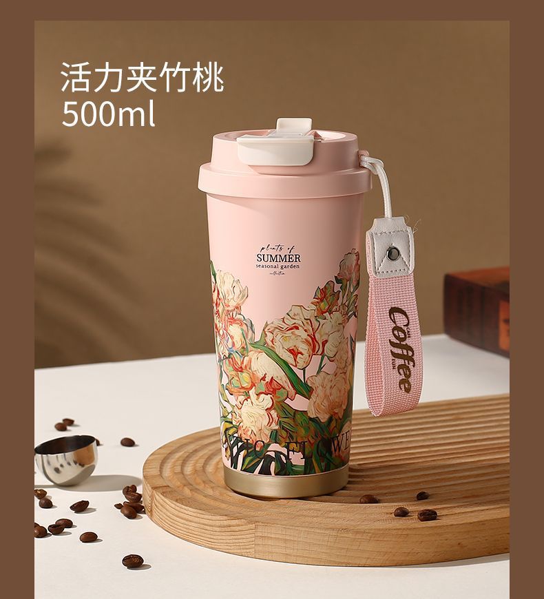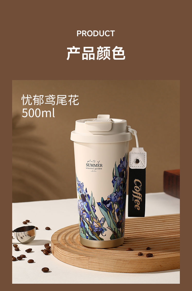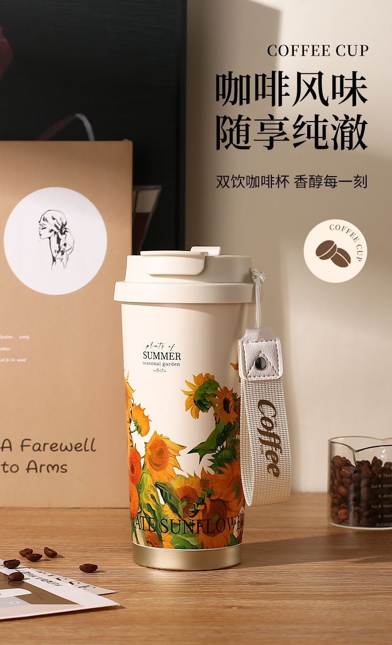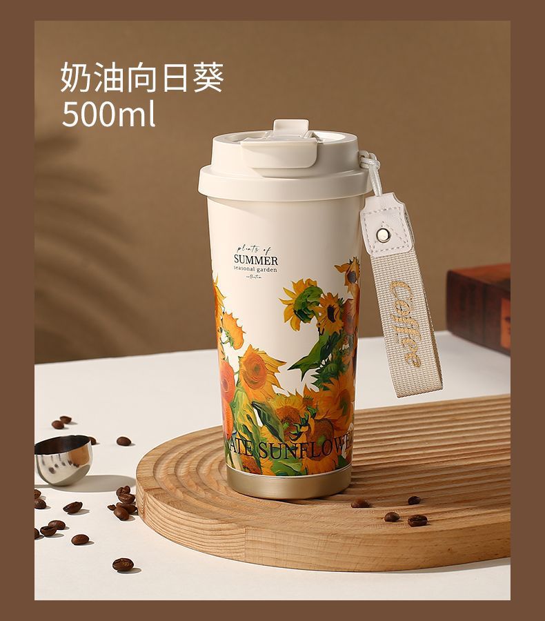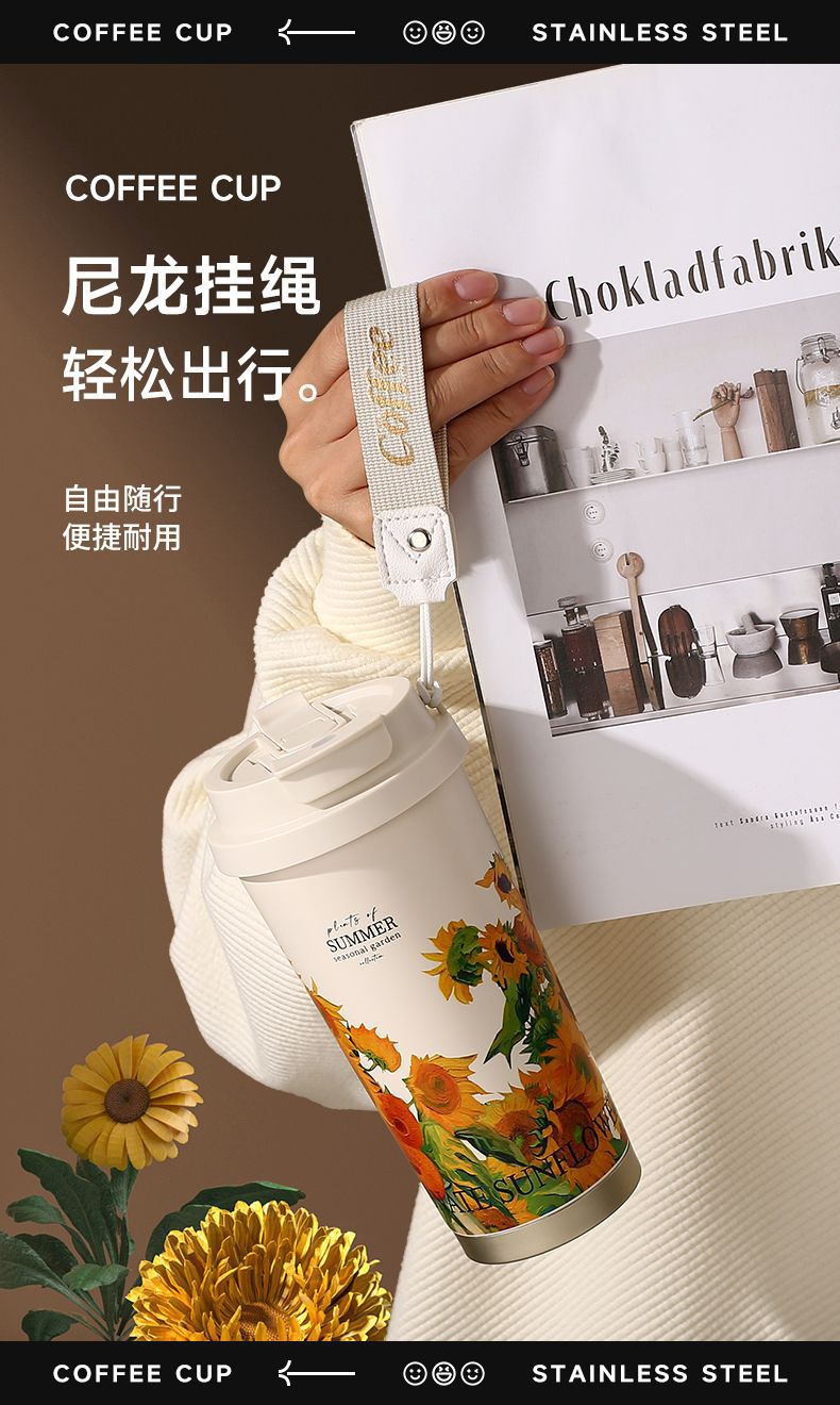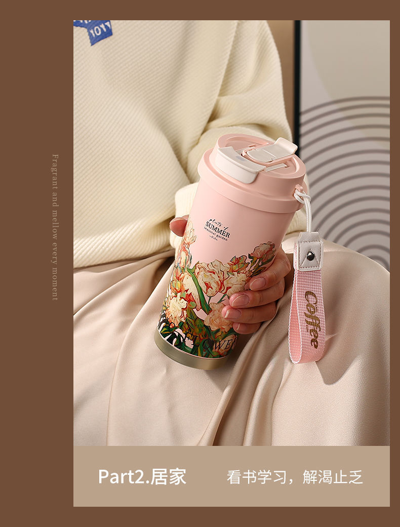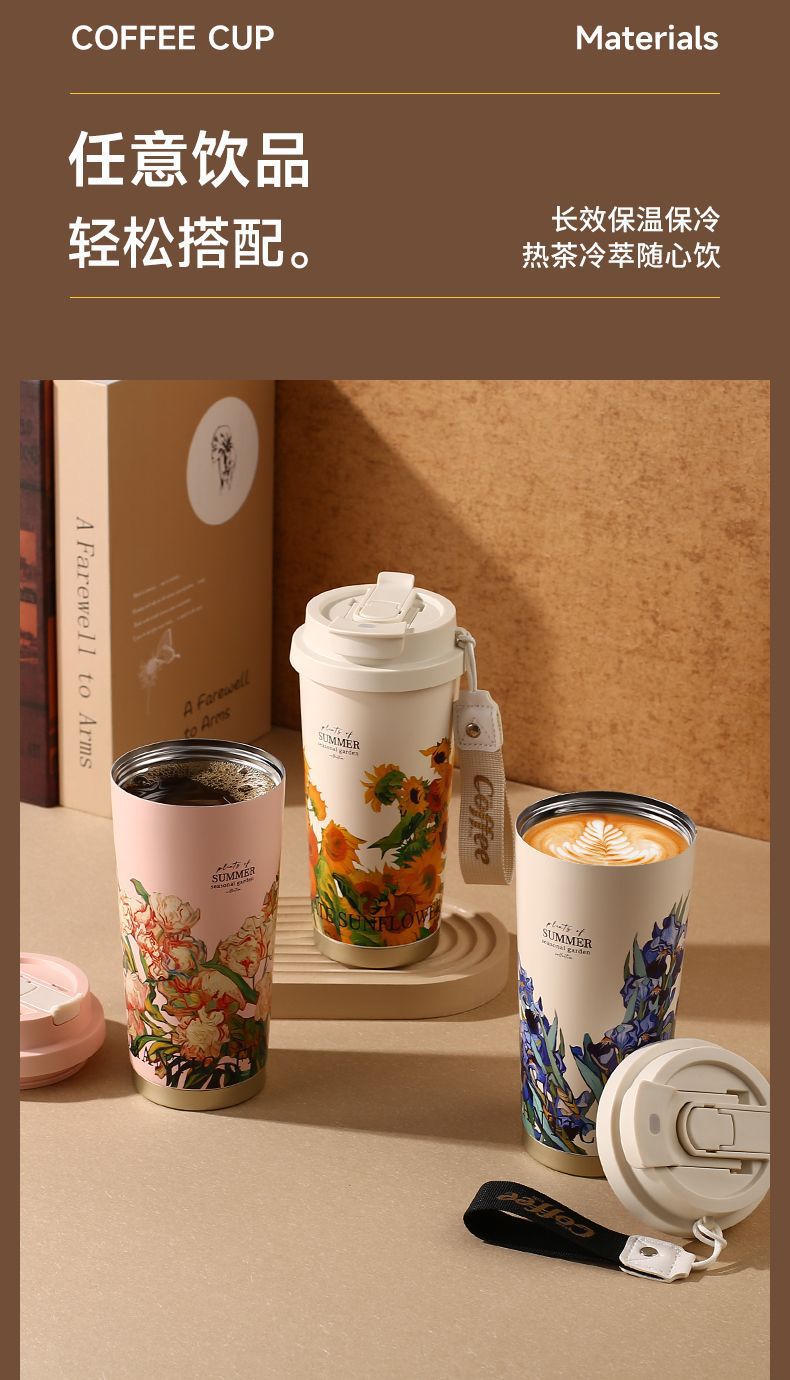 ゴッホ保温カッププレゼントコーヒーカップ卸売り女子高颜値双飲カップ軽贅沢随行鈴蘭コップ