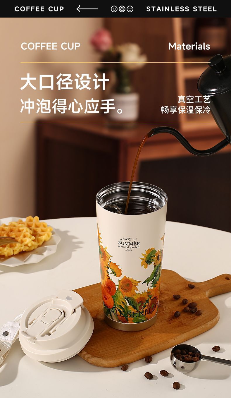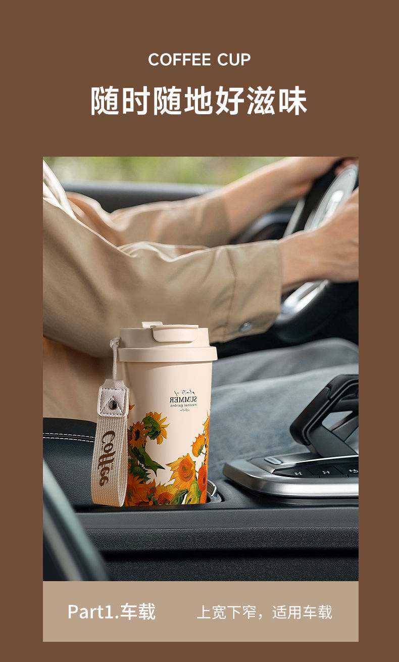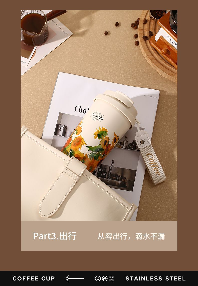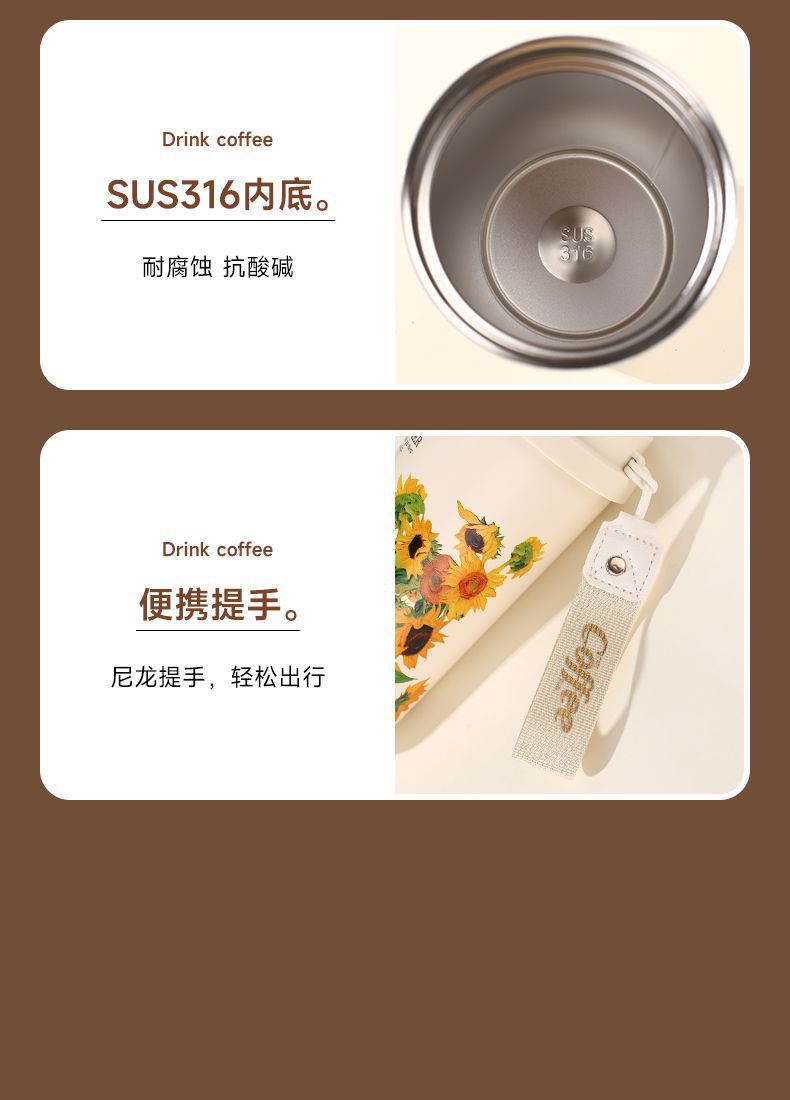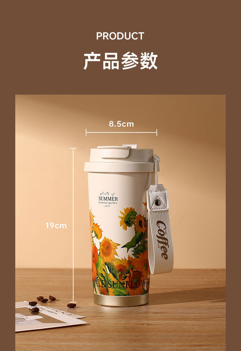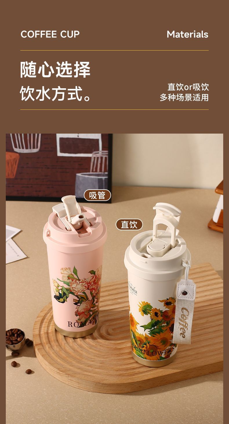 ゴッホ保温カッププレゼントコーヒーカップ卸売り女子高颜値双飲カップ軽贅沢随行鈴蘭コップ