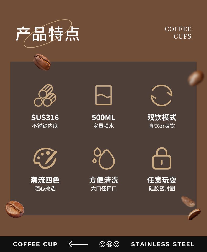 保温カップ卸売り316ステンレス児童双飲ストロー大容量高颜値携帯学生プレゼントカップ