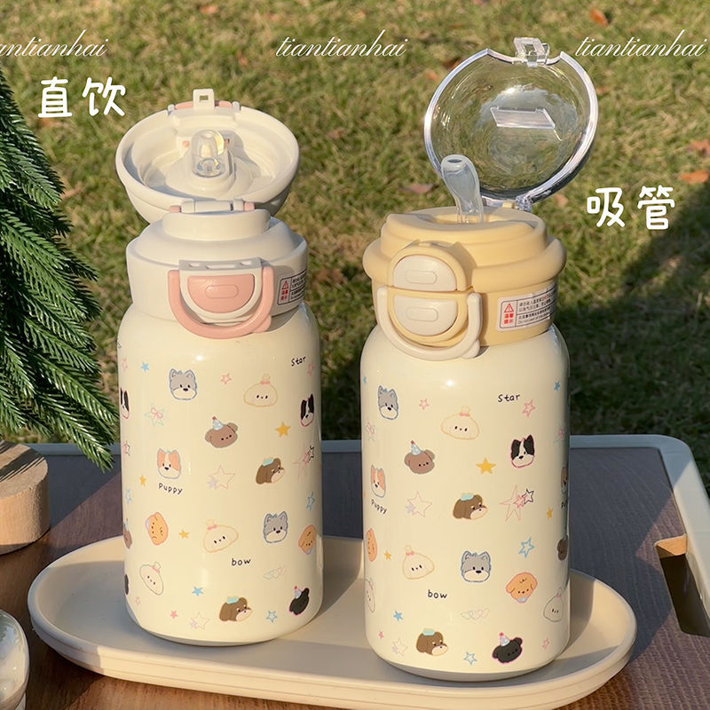 パチャ犬保温カップ女子学生高颜値かわいいストロー携帯コーヒーカップins風児童学生カップ