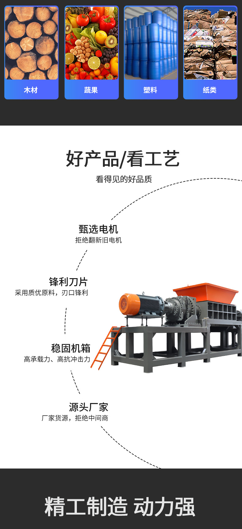 大型撕碎机定制单轴双轴多功能生活工业垃圾粉碎塑料轮胎木料破碎