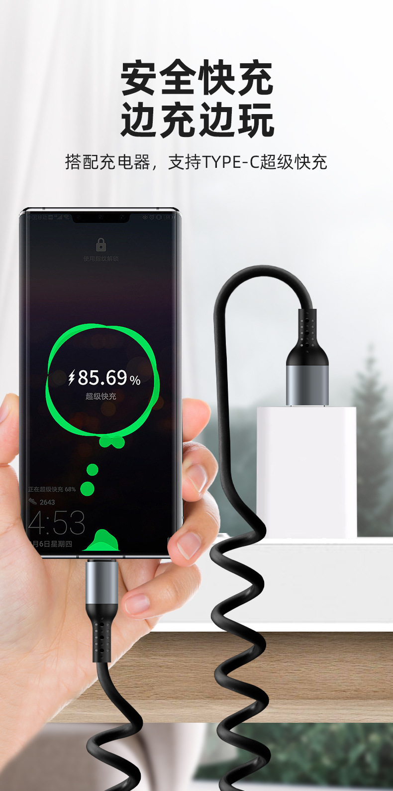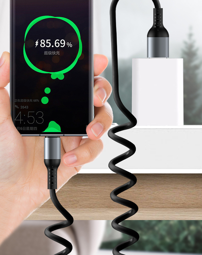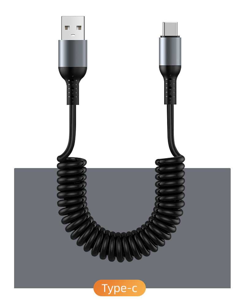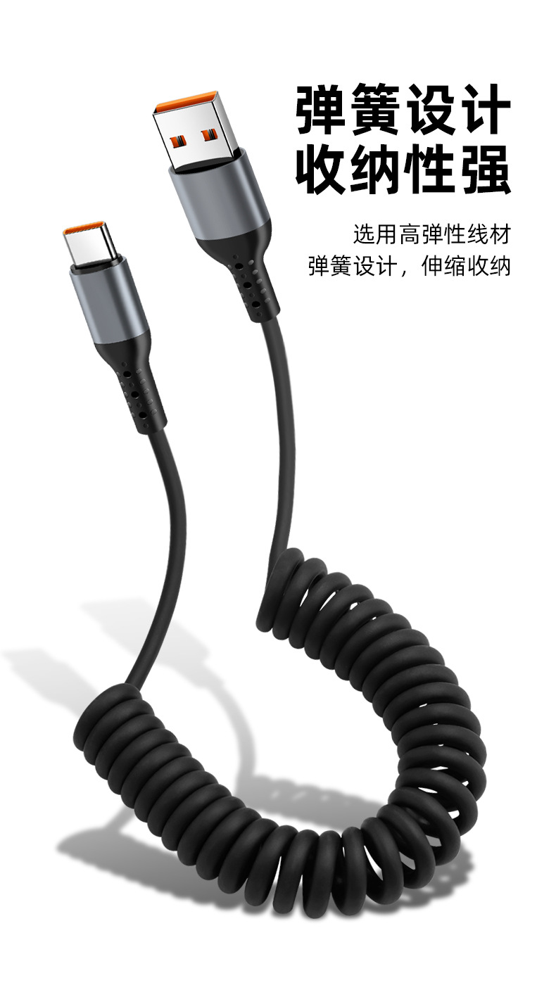 液体シリカゲルスプリング伸縮データケーブル100W急速充電ダブルtype-C車載パチンココイル充電線車用