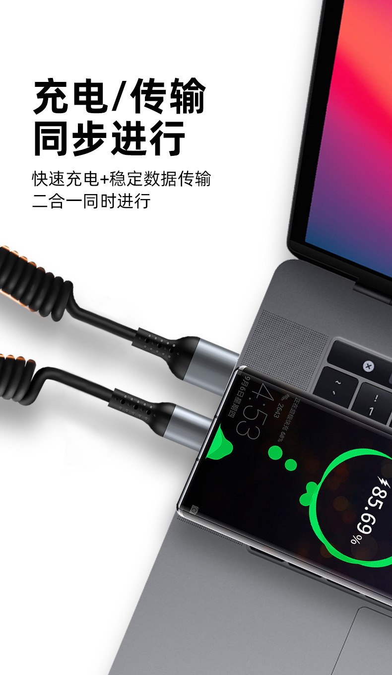 PD100W急速充電スプリング伸縮データケーブルダブルtypeC車載carplayパチンコストレッチ充電線弾性