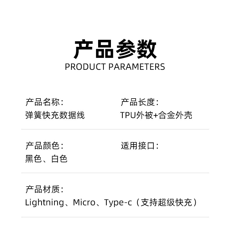 弹簧数据线PD100W快充汽车用双type-C弯头充电线摩托车弹力伸缩线