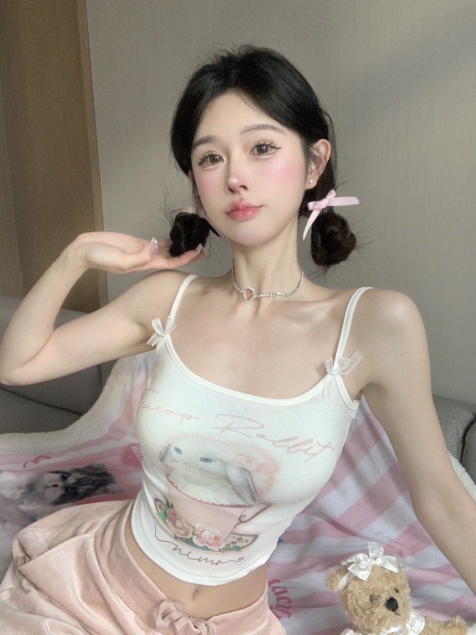 純欲風修身ストラップ蕾リボン胸パッド蝶結び甘いギャル快適シンプルなベスト女性