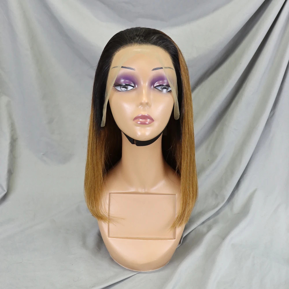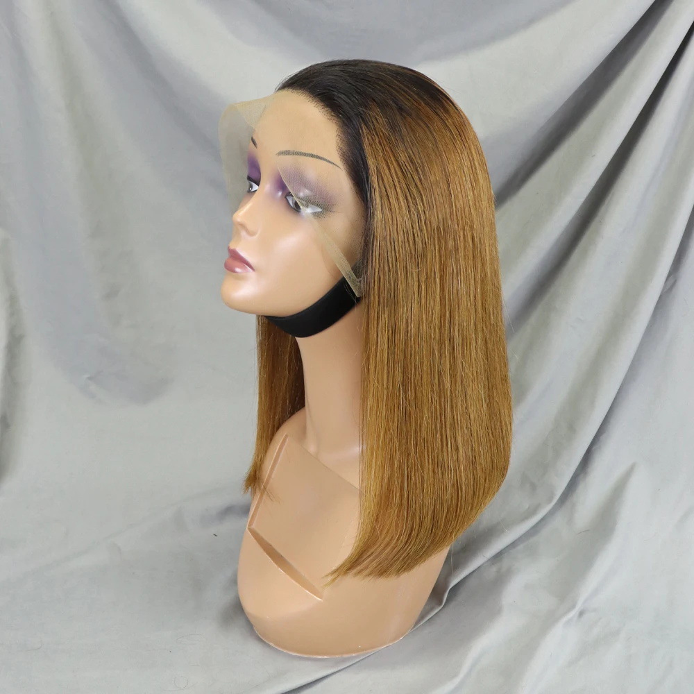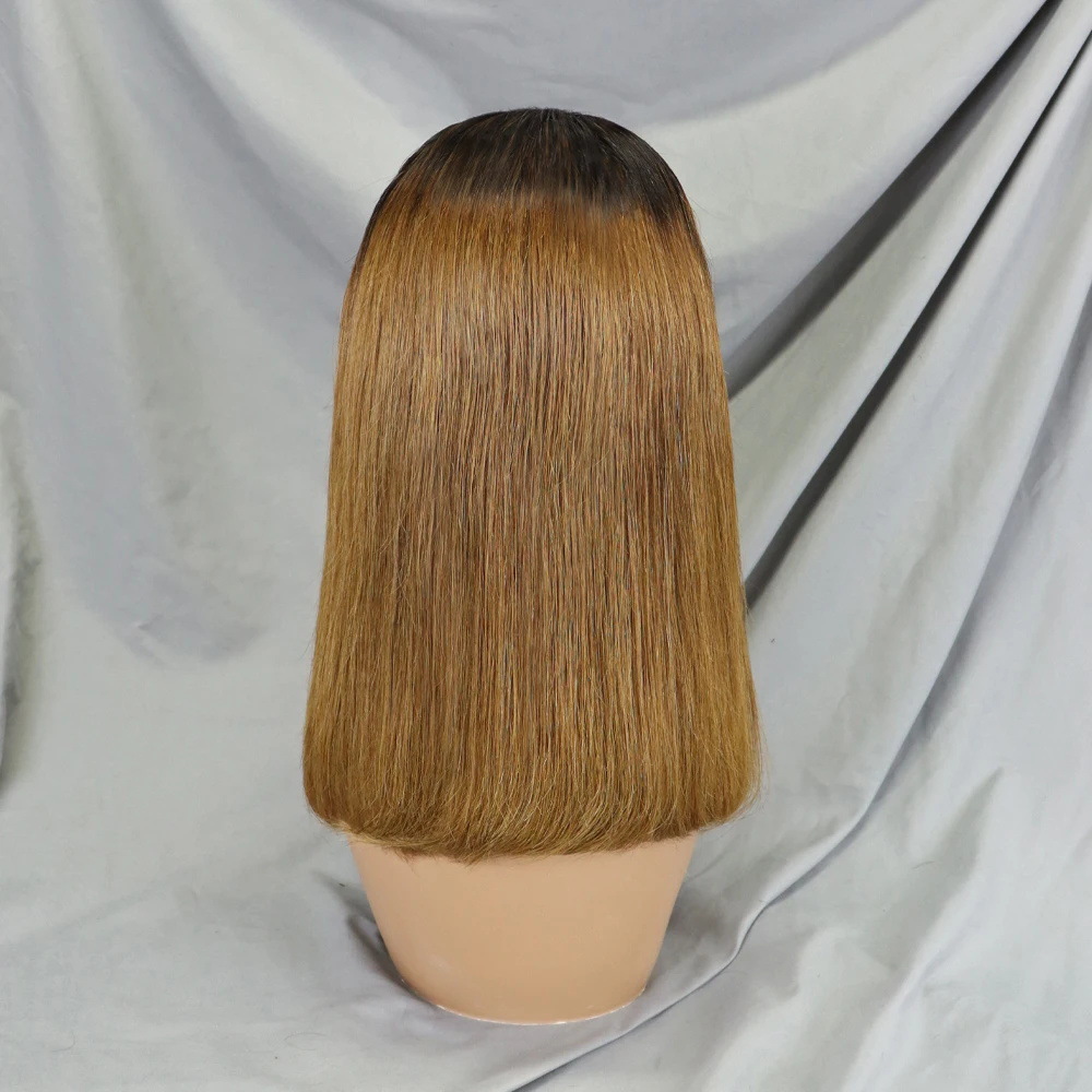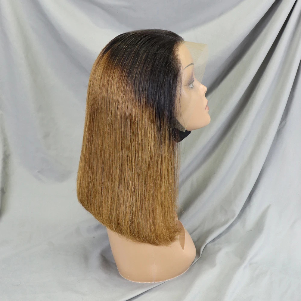 12aヒューマンhair top quality 1b/27ゴールドブラウン13*4フロンティアボブ