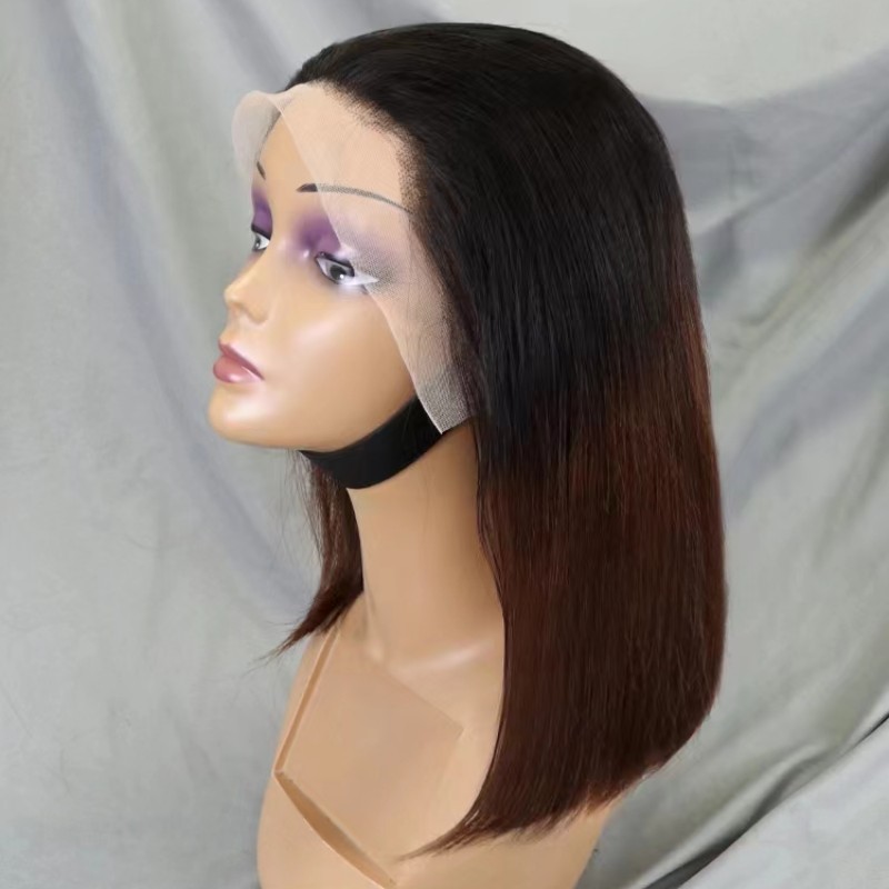 ボーンストレイトレースフロンティアウィッグショートボブ1BT27ヒューマンヘア
