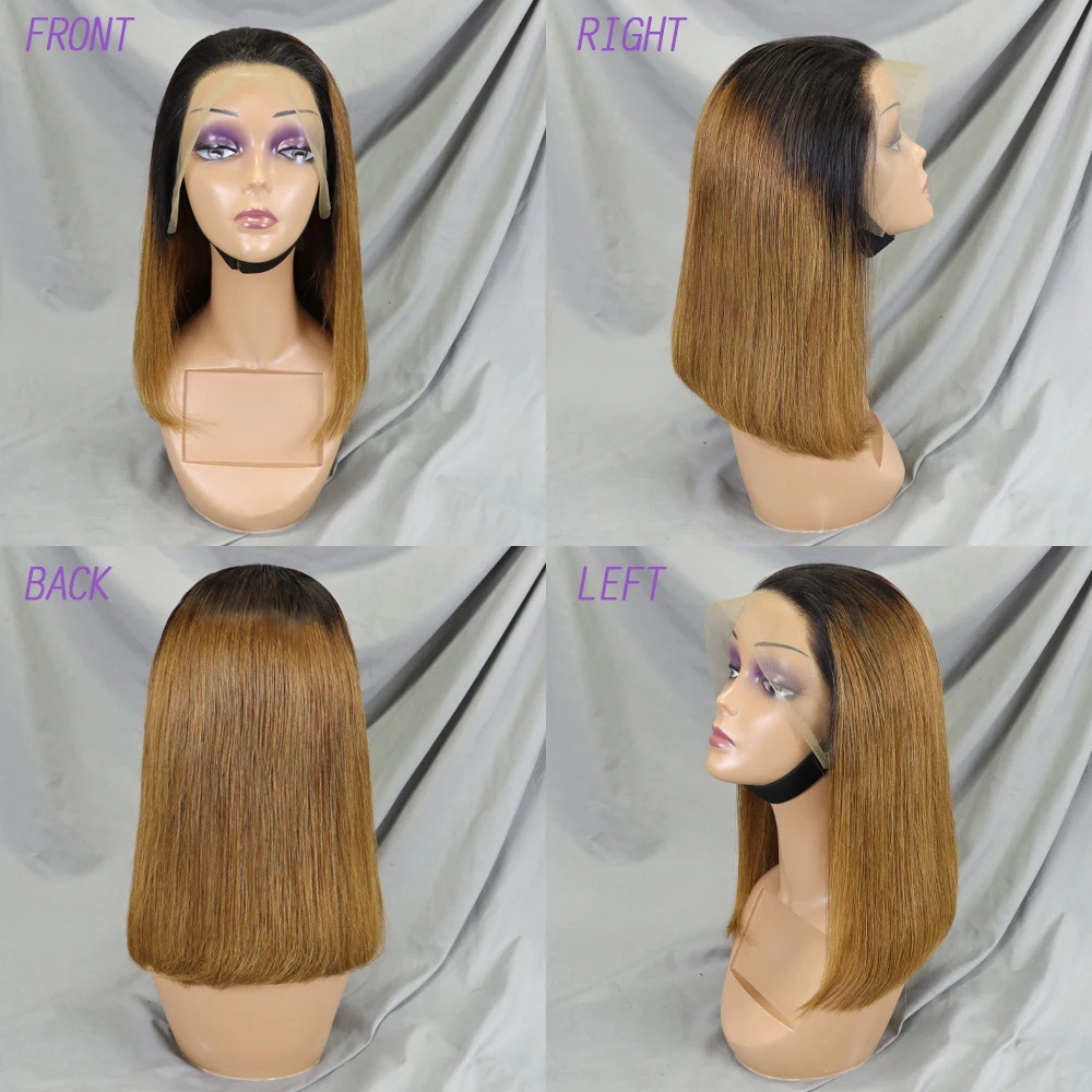 10aヒューマンヘアボブ1B/30 Color 13*4フロンティアレースウィッグインディアン