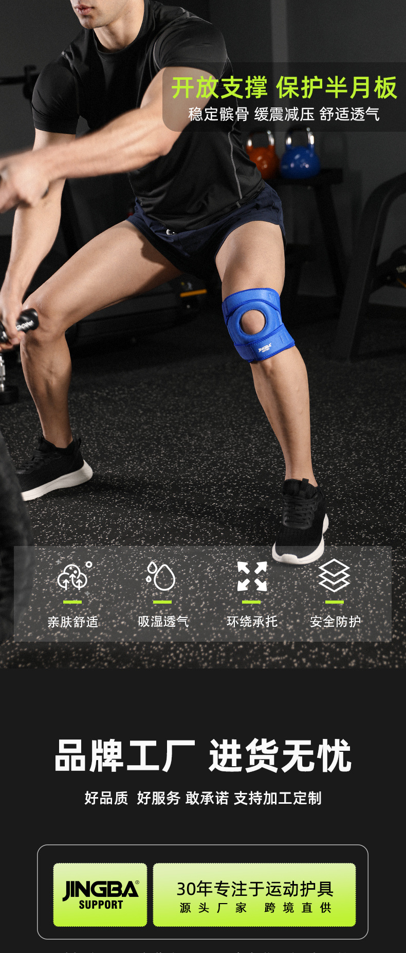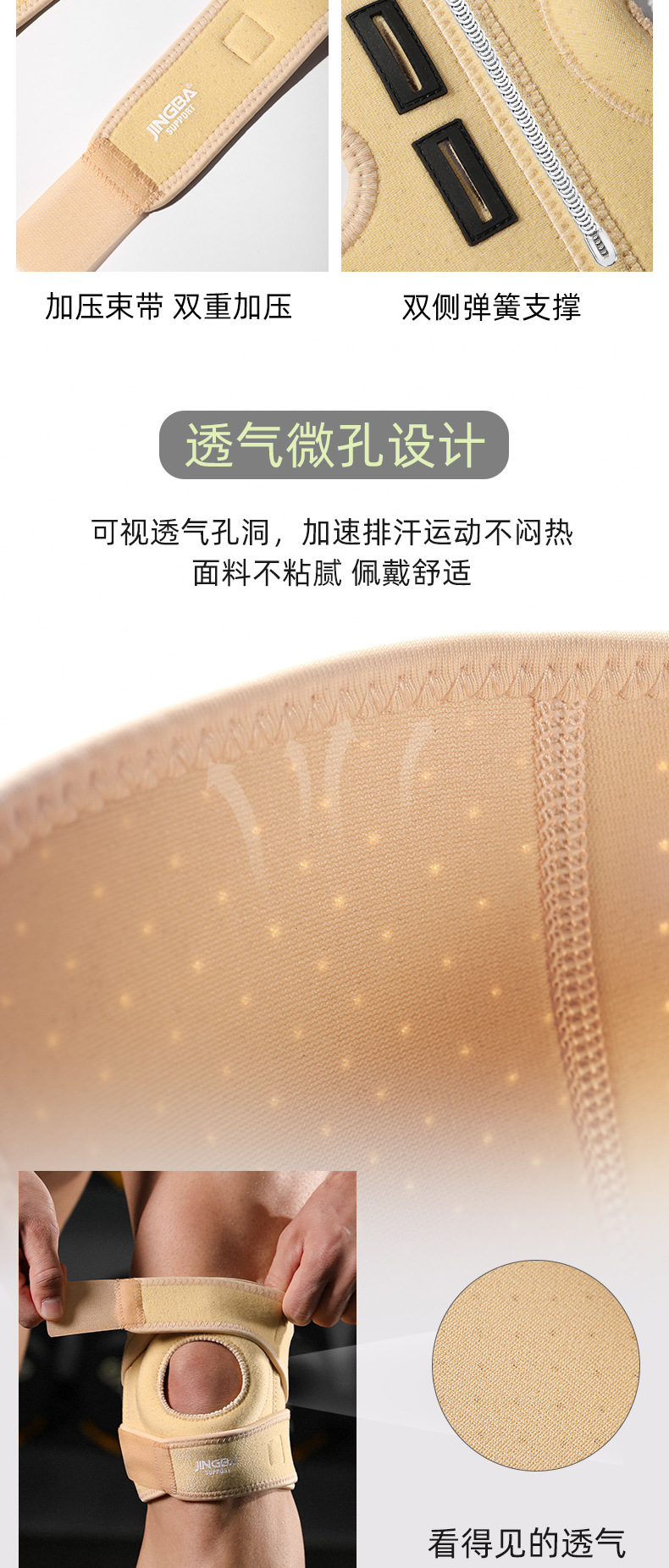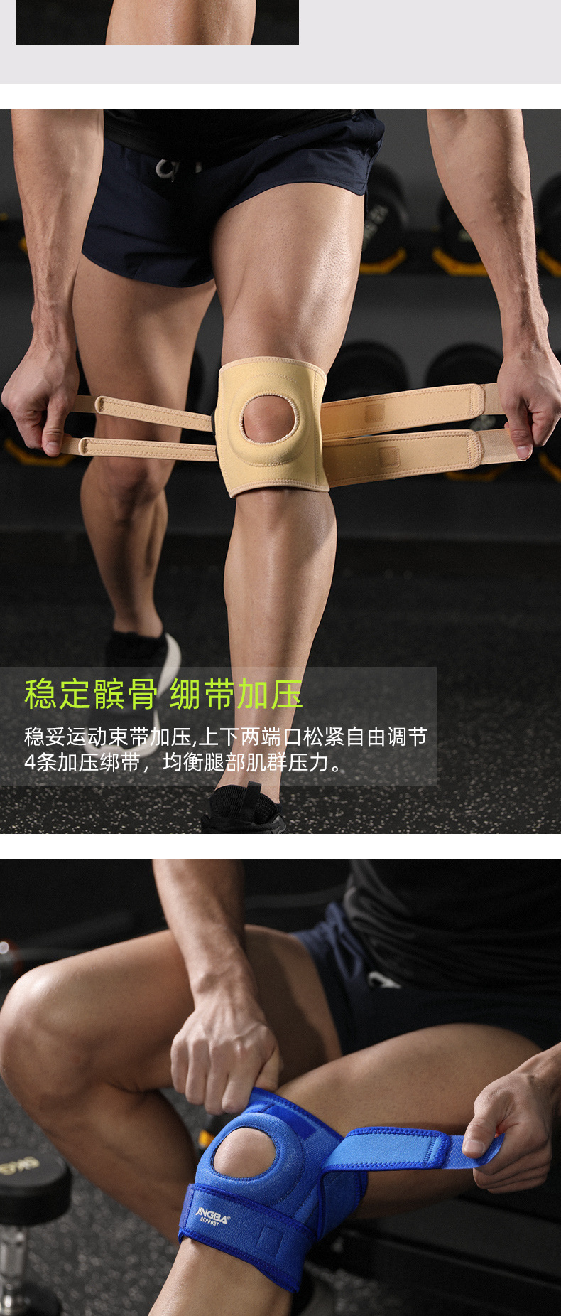 JINGBA スポーツ膝パッド、膝圧縮、衝撃吸収、滑り止め、通気性、アウトドアサイクリングスポーツフィットネス製品メーカー