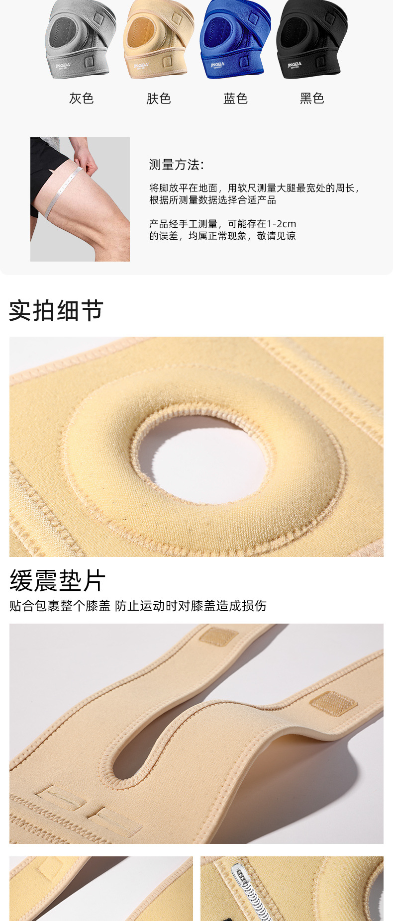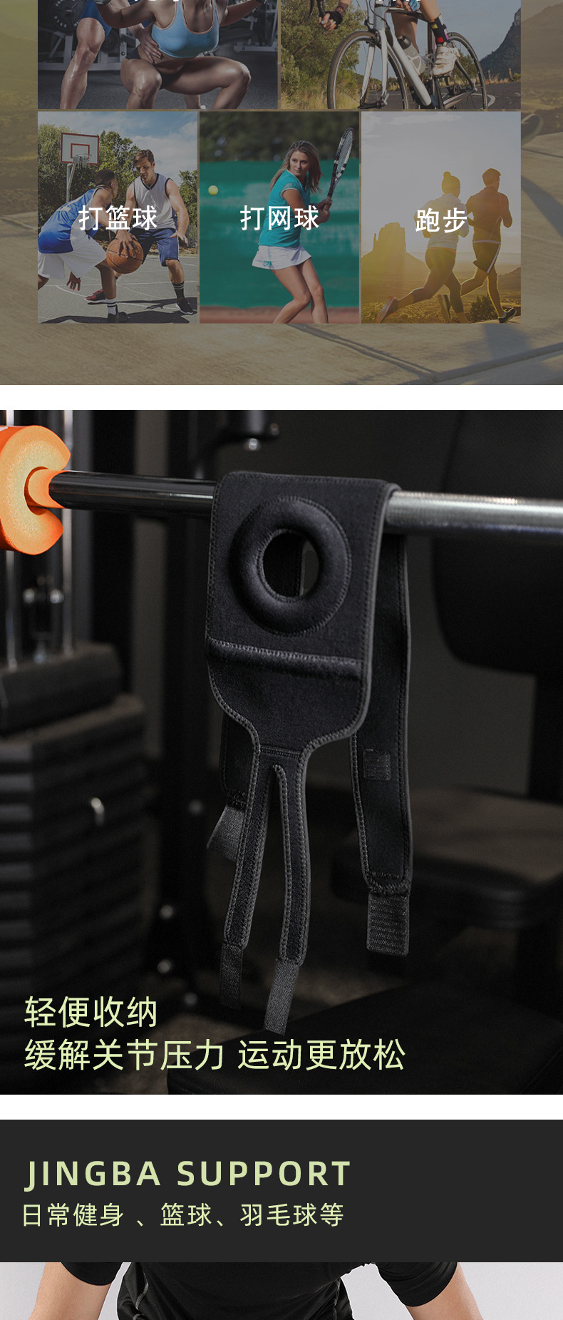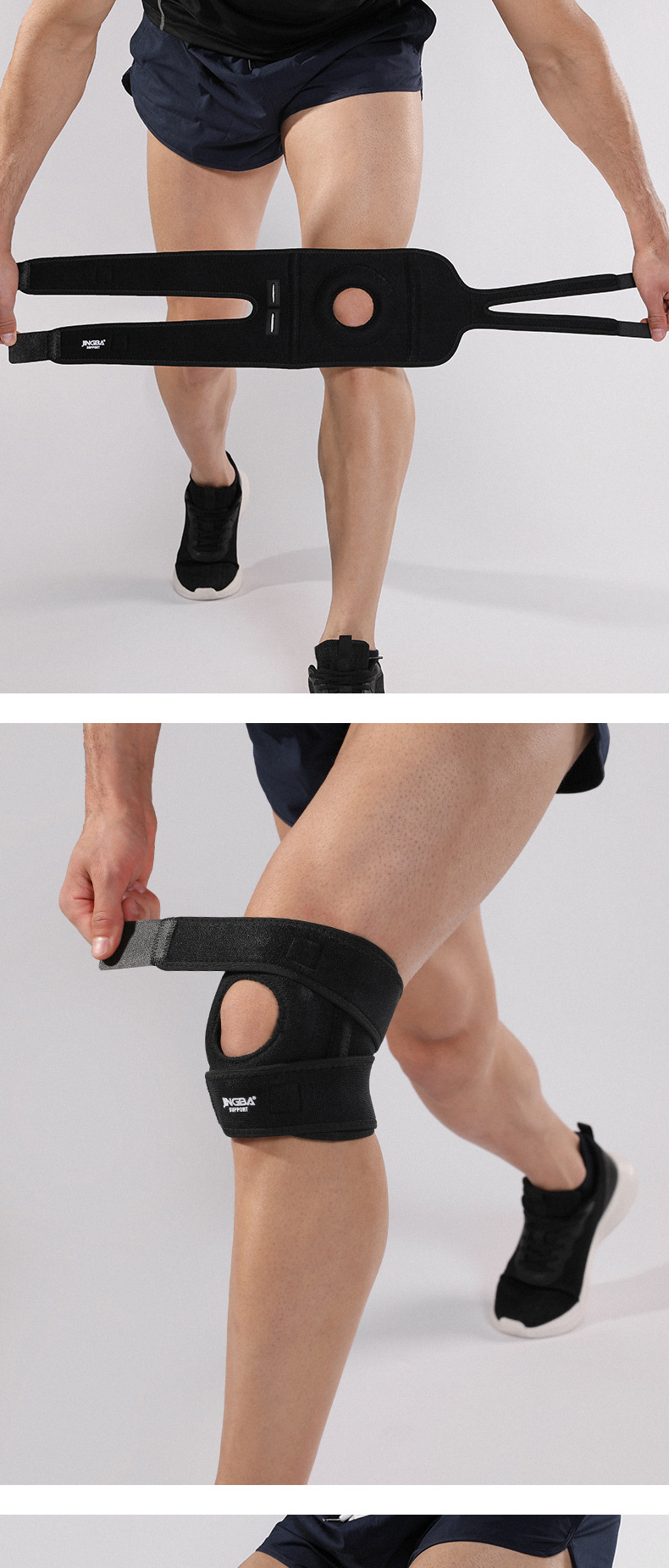 JINGBA スポーツ膝パッド、膝圧縮、衝撃吸収、滑り止め、通気性、アウトドアサイクリングスポーツフィットネス製品メーカー