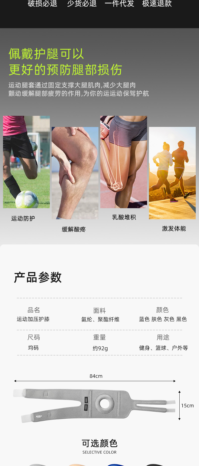运动护膝登山专业护具男防滑支撑膝盖套加压女篮球跑步批发亚马逊