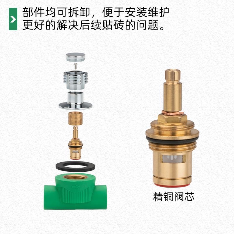 Ppr精品暗装20バルブppr4分暗弁ppr速開暗弁全銅弁芯精品家装弁
