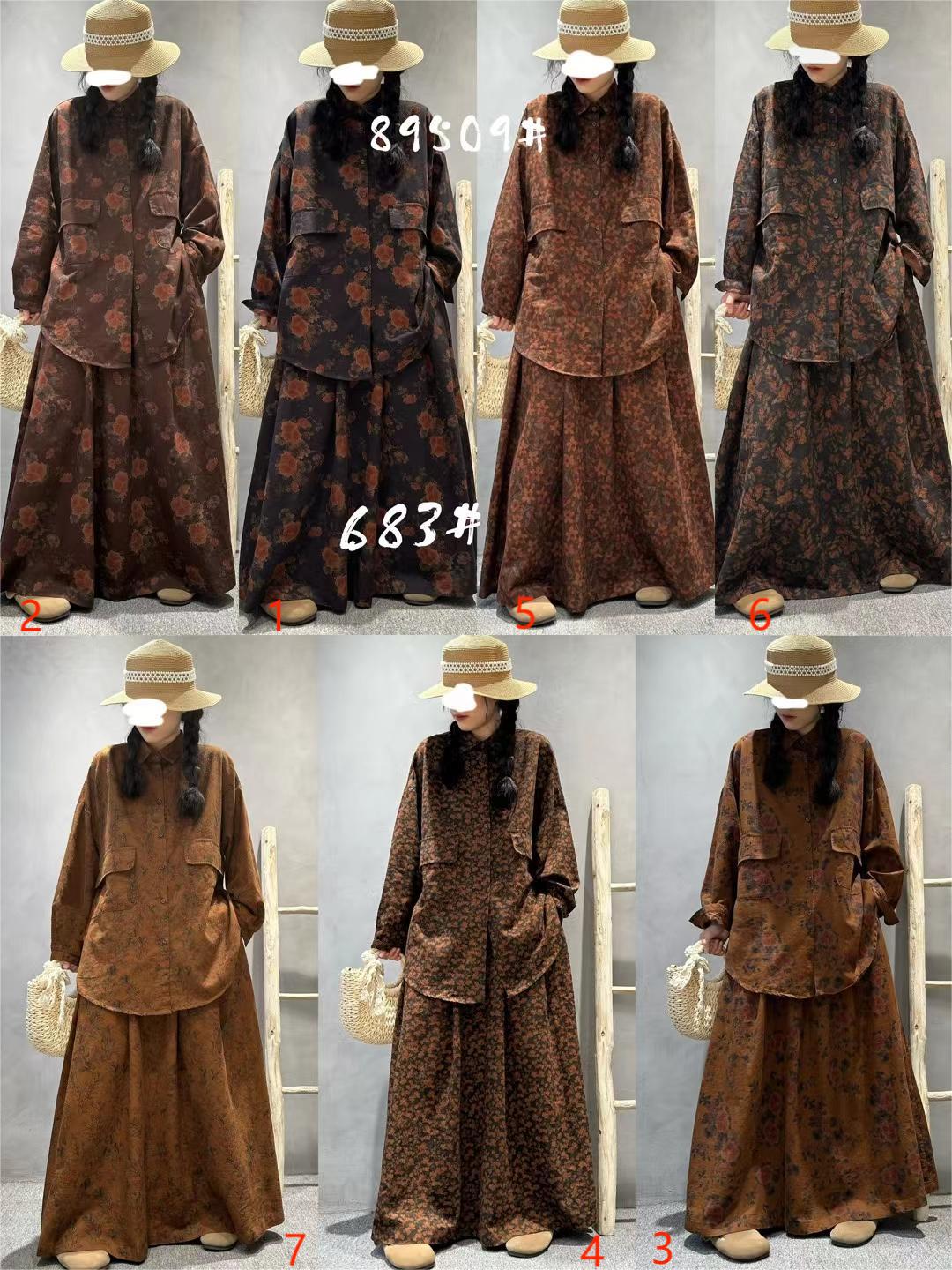 Cz89509 683レトロなプリントのゆったりとした大きいサイズのカジュアルスーツ2024新型ファッション気質シャツ女装