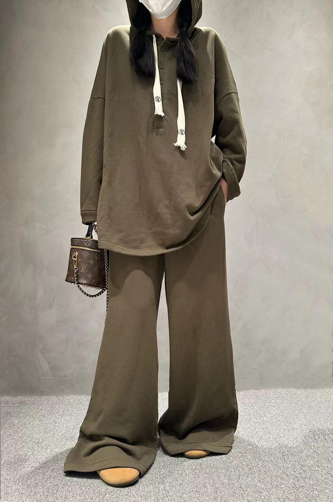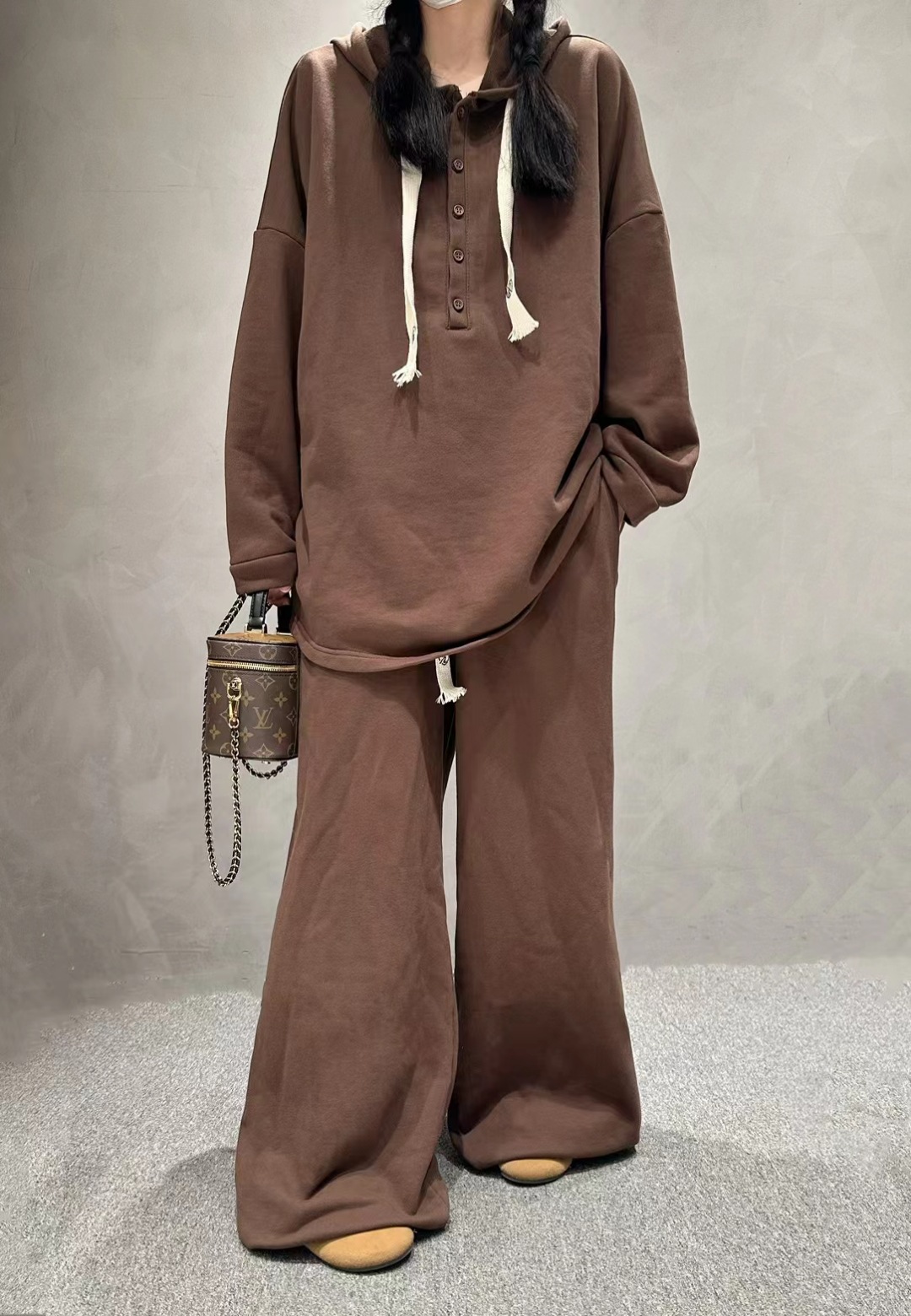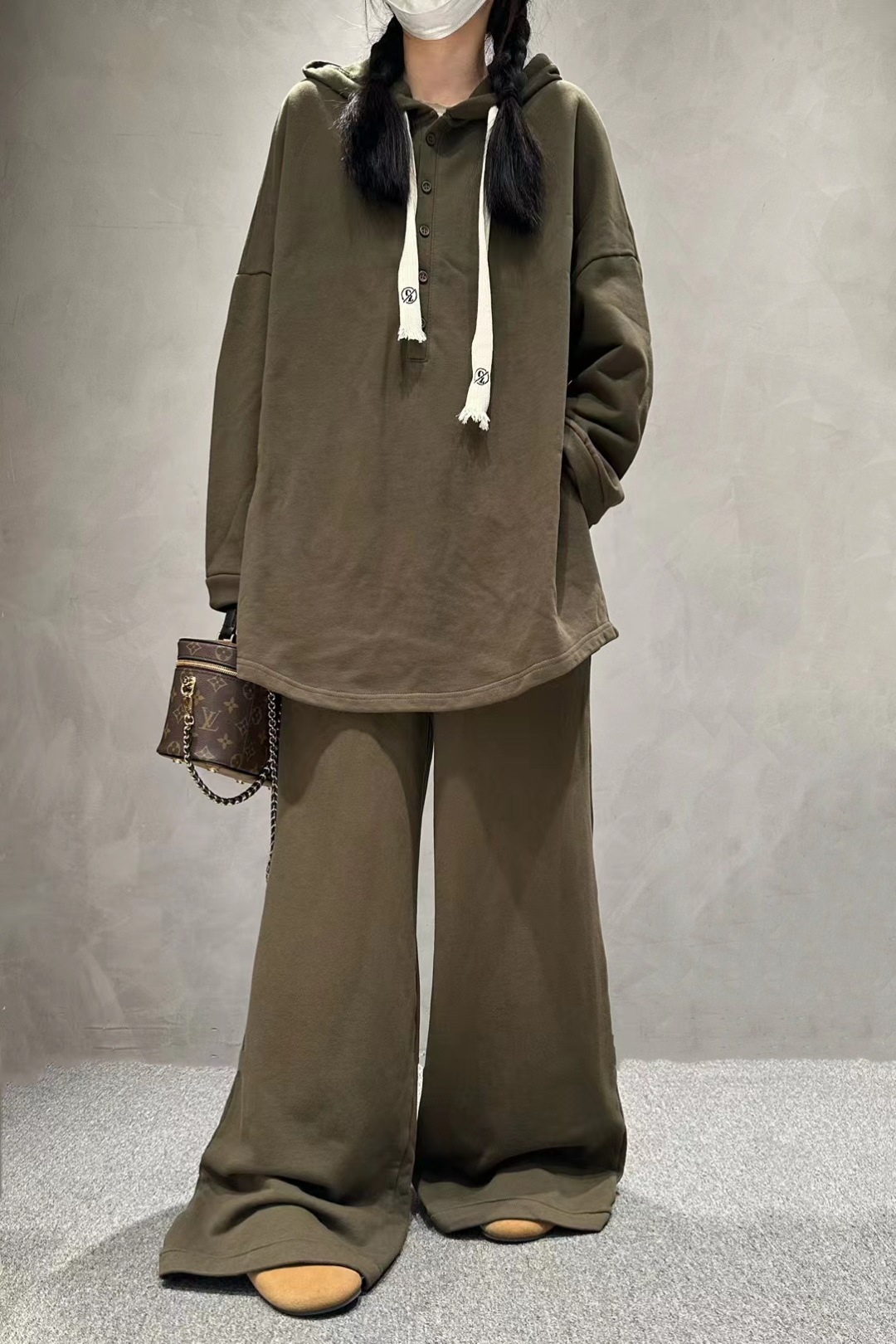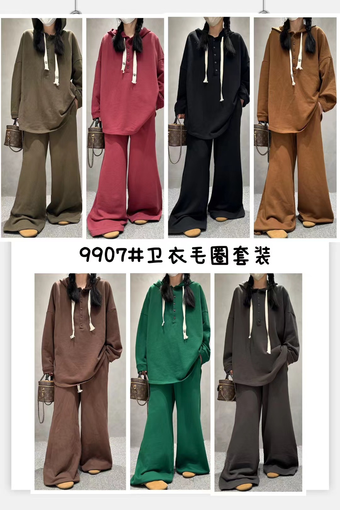 Cz9907純色の毛輪の衛衣のスーツの2024の新型のゆったりしている大きい版はやせています。