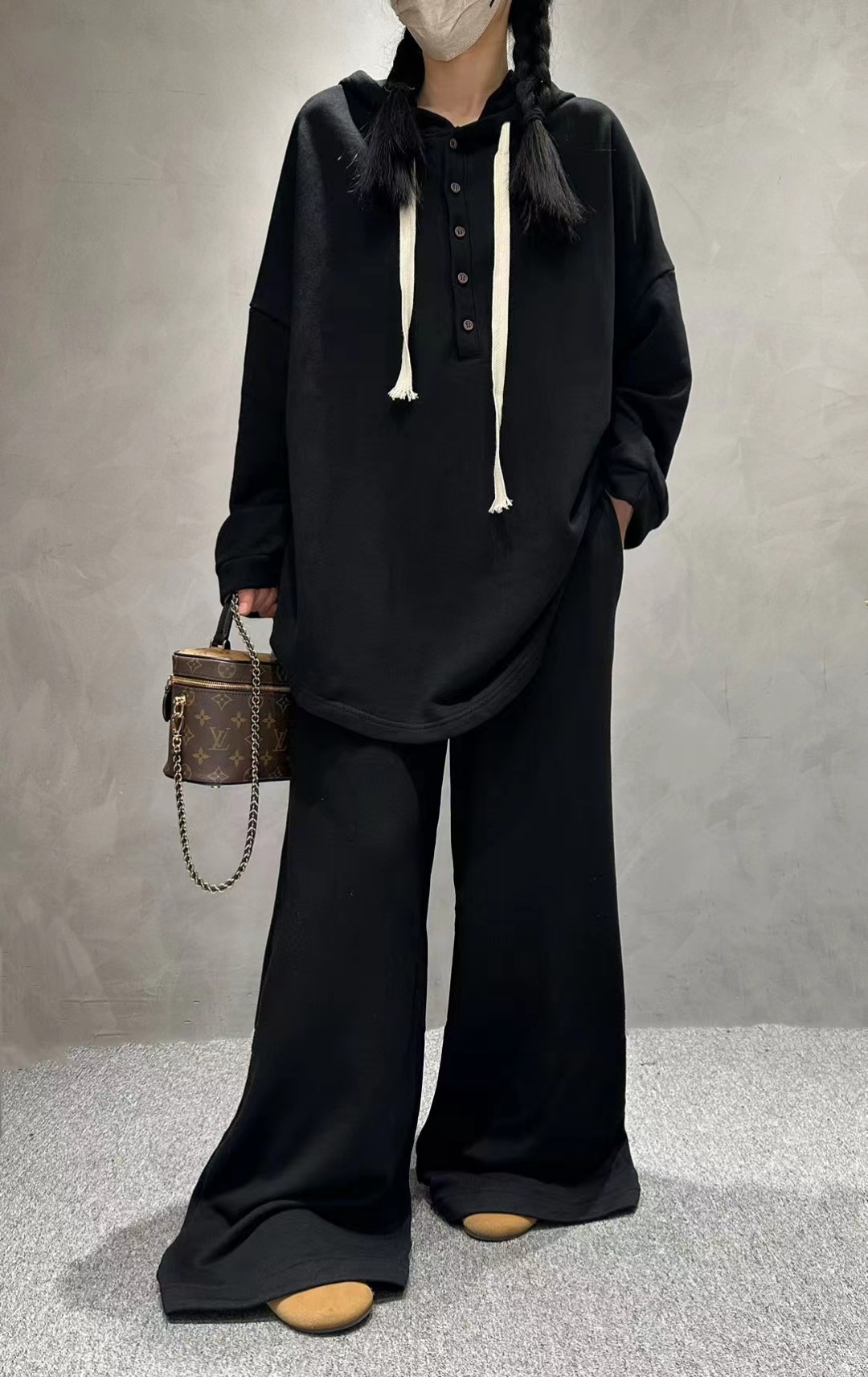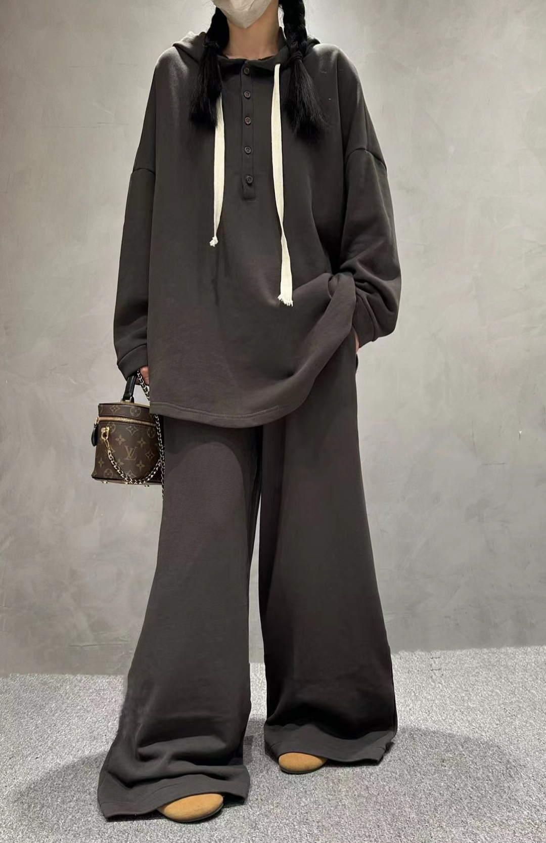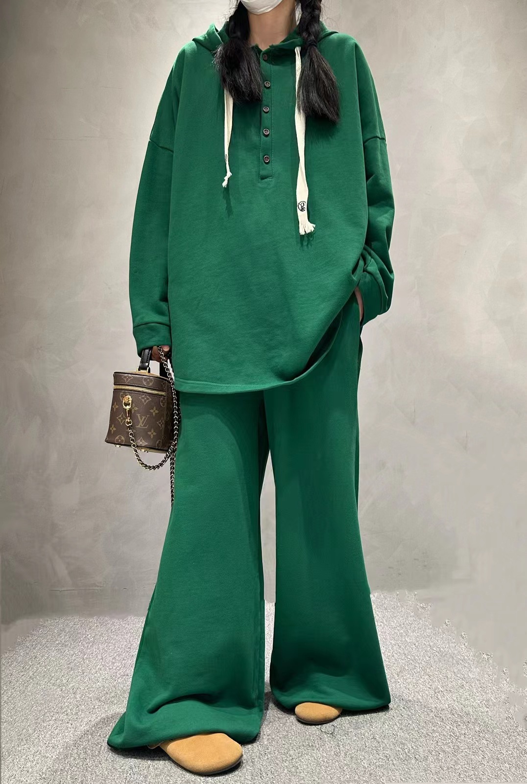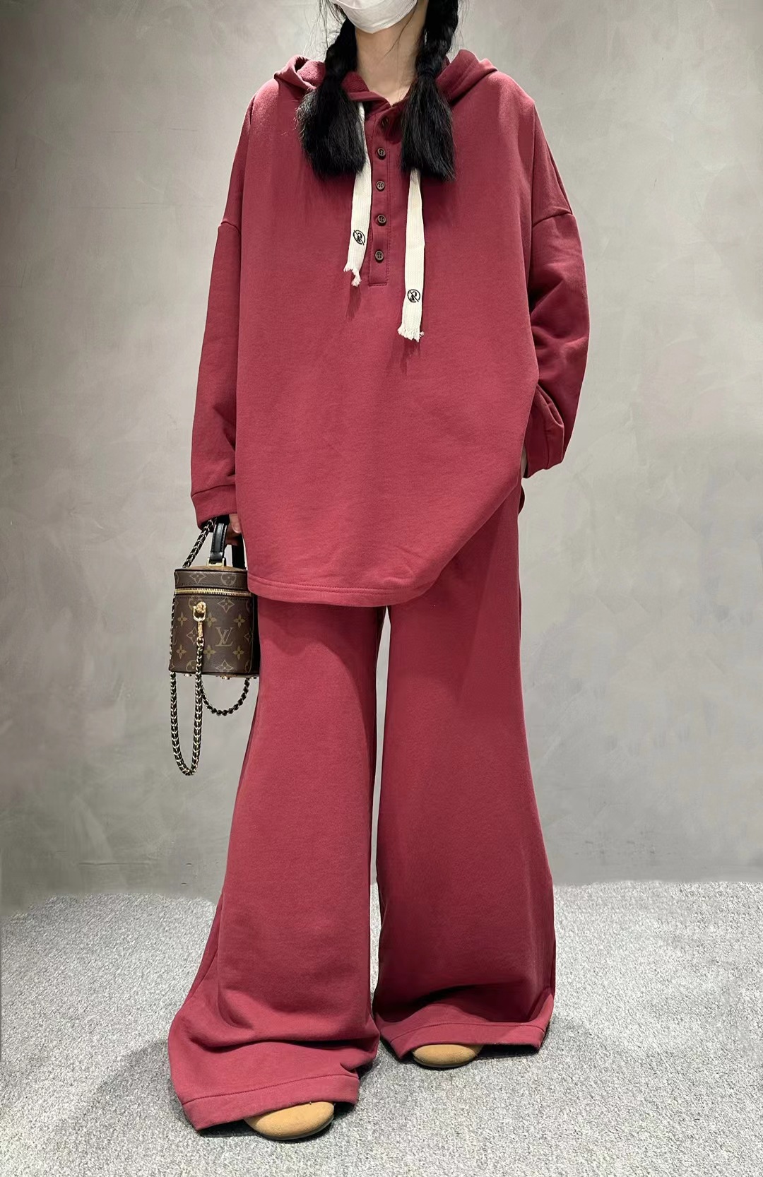 Cz9907純色の毛輪の衛衣のスーツの2024の新型のゆったりしている大きい版はやせています。