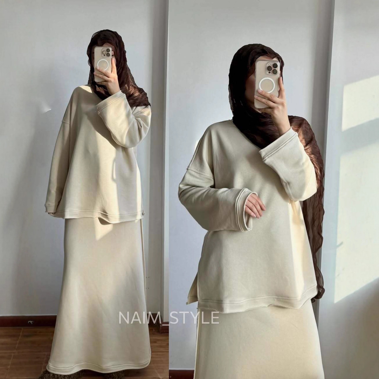 圆领宽松大码显瘦卫衣T恤+半身裙女2025秋冬款百搭高级感两件套装