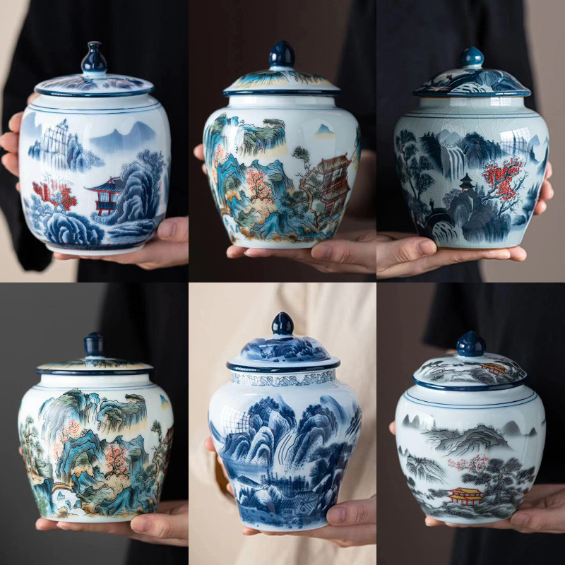 新商品陶磁器茶葉缶色とりどり青花水墨中国式レトロ密封缶紅茶緑茶葉防湿貯蔵缶