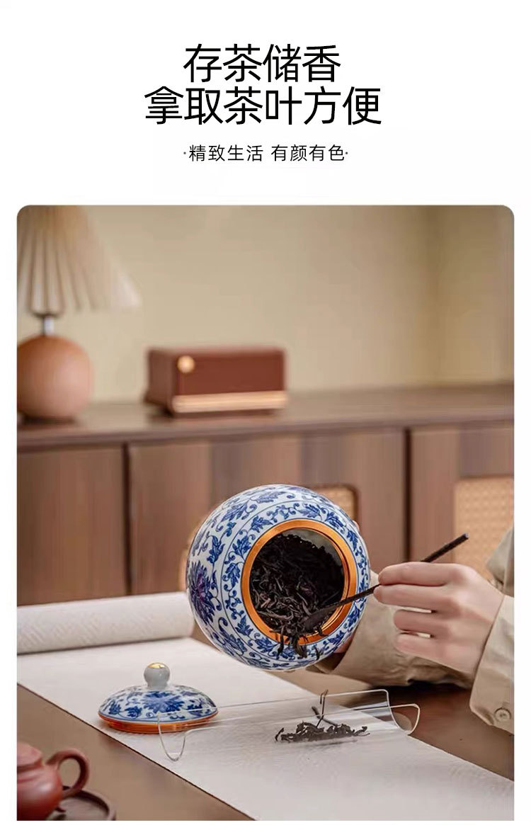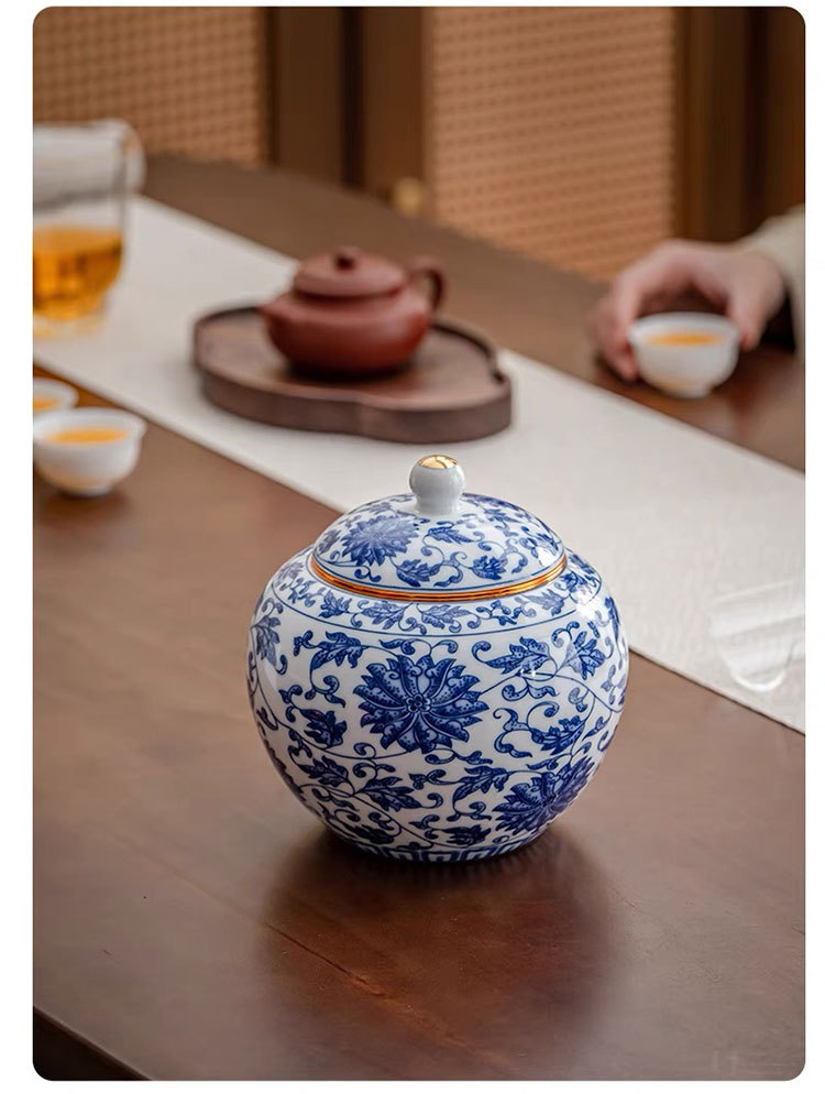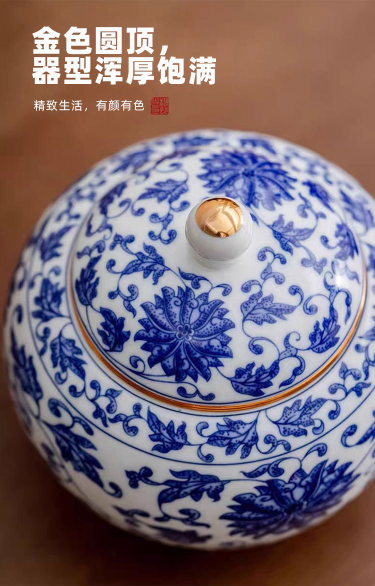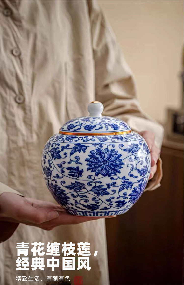 エナメルセラミック茶葉缶青花磁器模造中国風精品防湿将軍缶プーアル密封缶置物