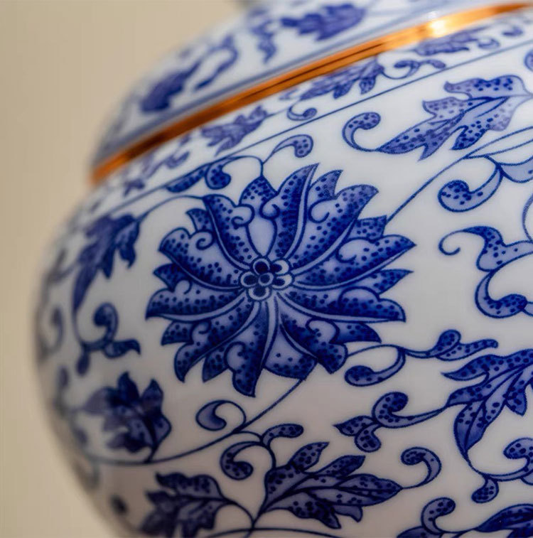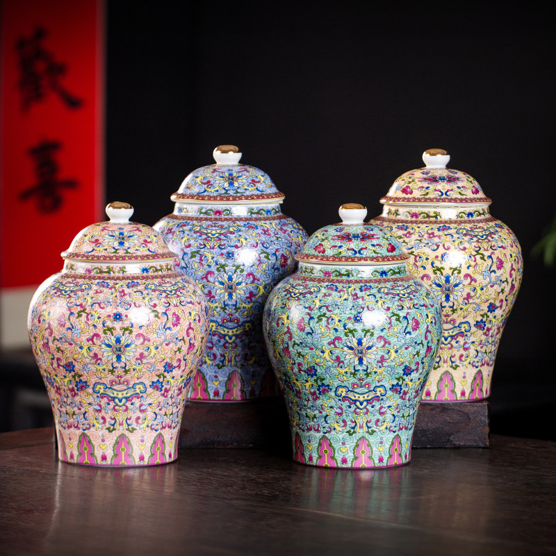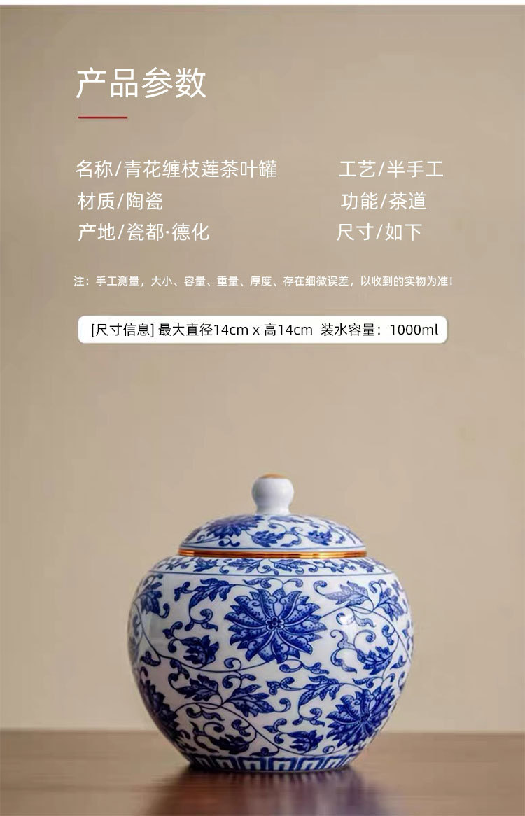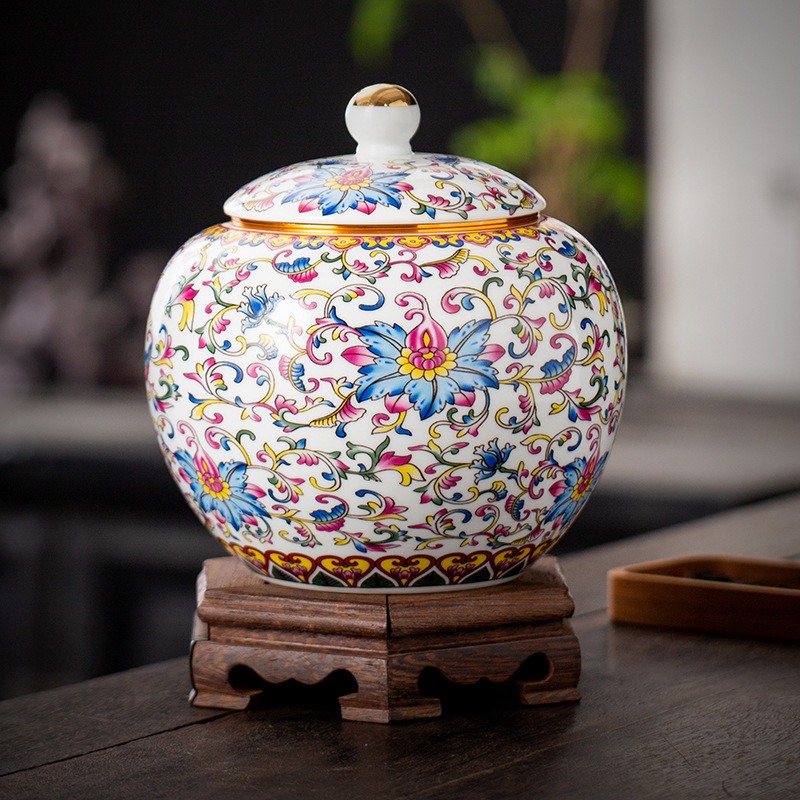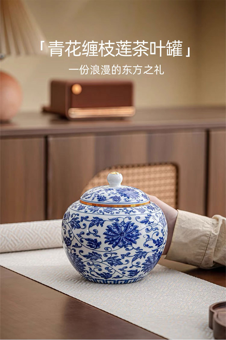 エナメルセラミック茶葉缶青花磁器模造中国風精品防湿将軍缶プーアル密封缶置物