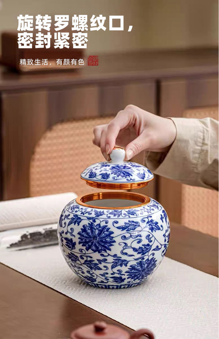 青花磁器復古大サイズ陶磁器茶葉缶密封缶家庭用白茶プーアル茶葉包装箱茶倉創意