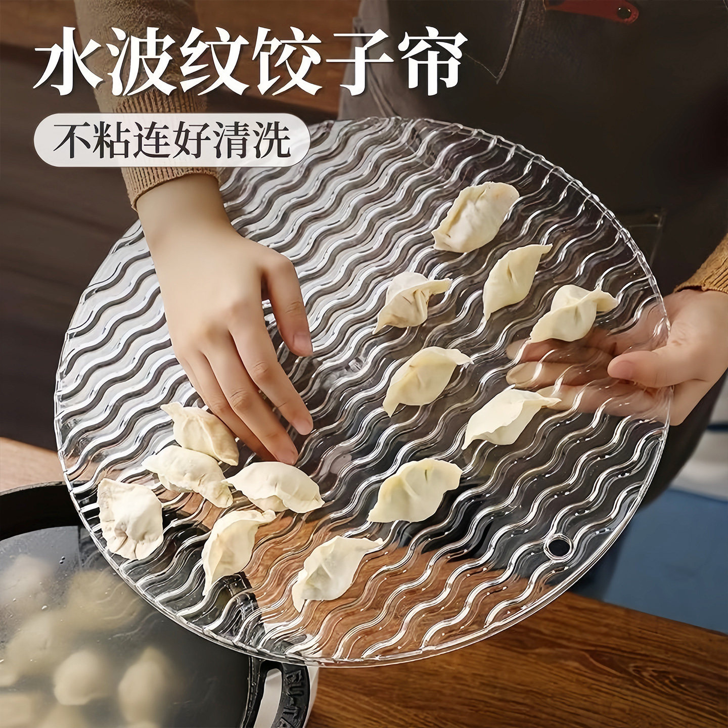 加厚不沾面家用波纹饺子帘家用水饺盘高颜值透明圆形垫子放置托盘