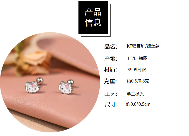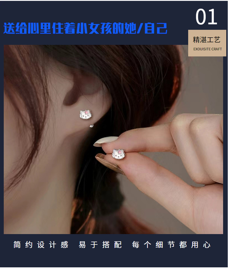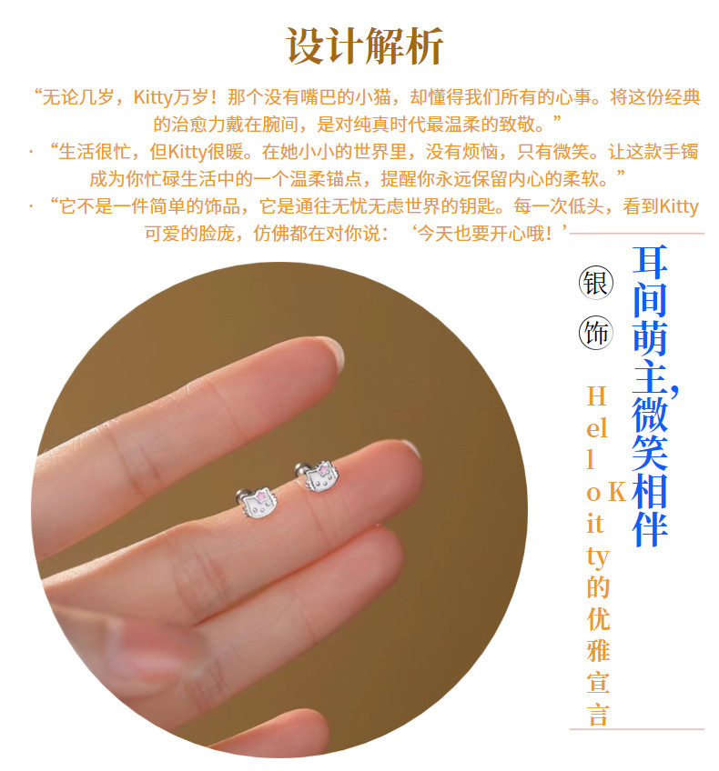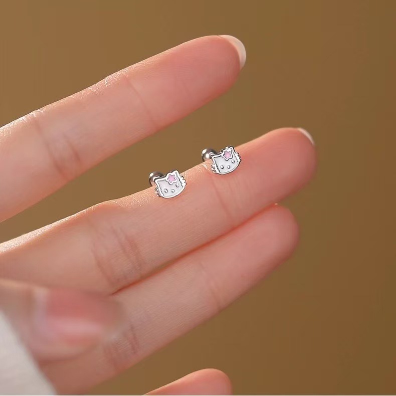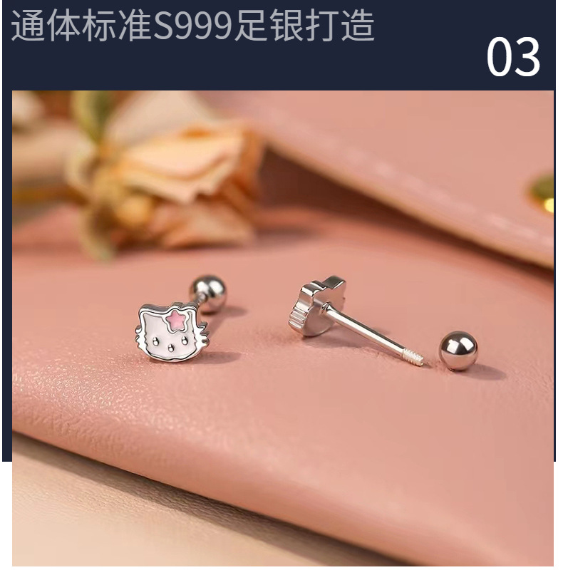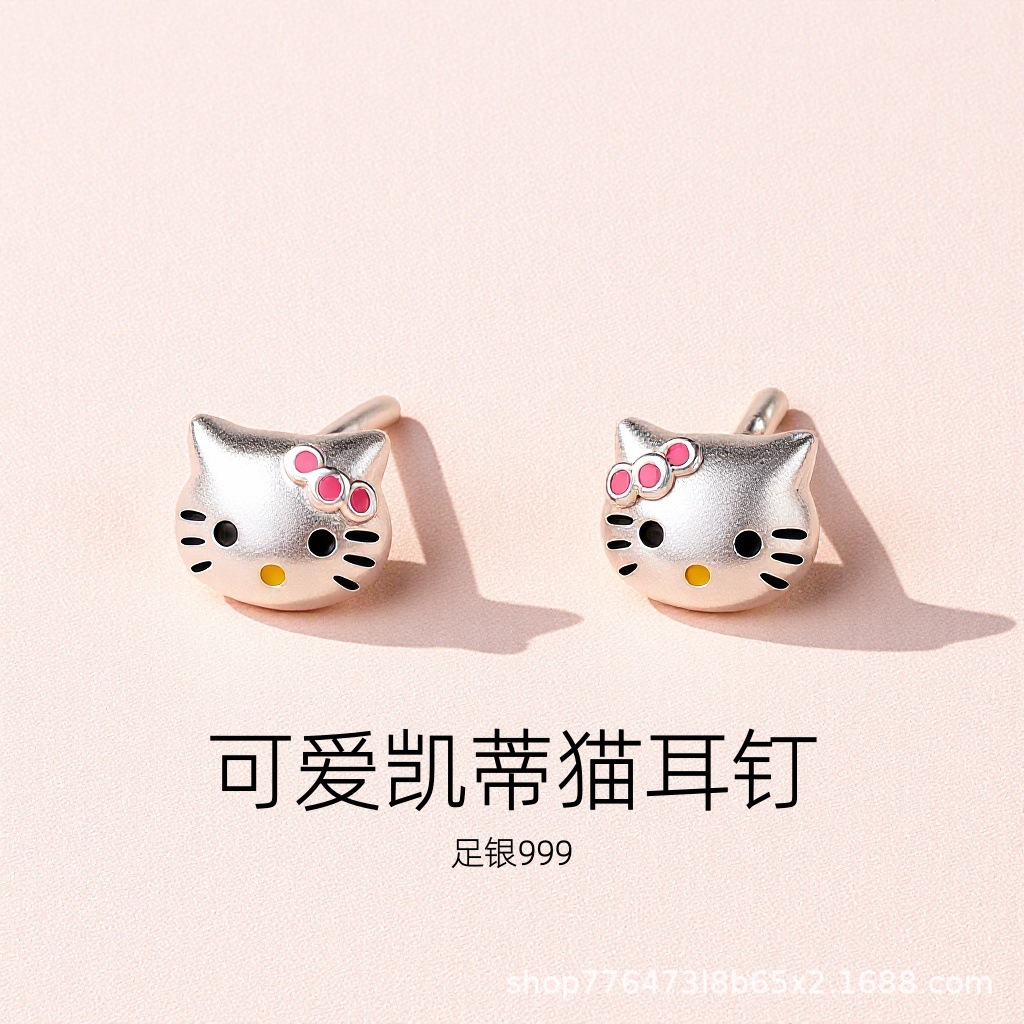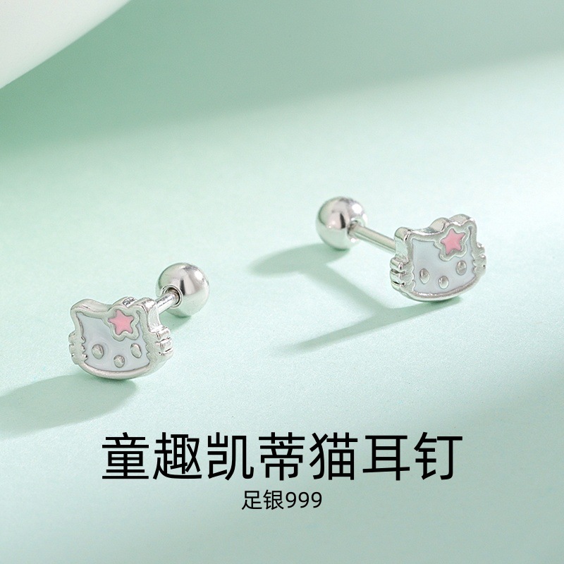 999純銀ハローキティネジ式イヤリング女性用軽奢高級感耳穴ケア子供用イヤリングジュエリー卸売