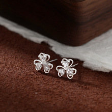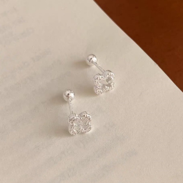 S999满钻镂空四叶草耳钉女简约时尚小清新耳骨钉睡觉不用摘养耳洞