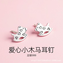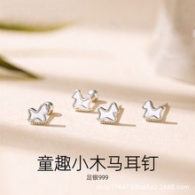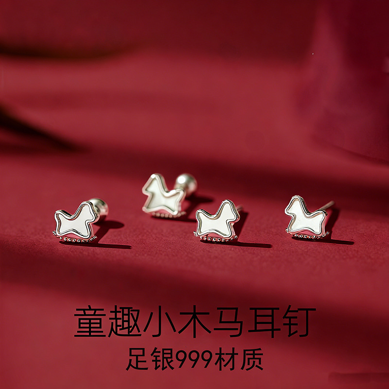 999足银木马螺丝耳钉女轻奢高级感简约甜美独特童趣秋冬耳饰饰品
