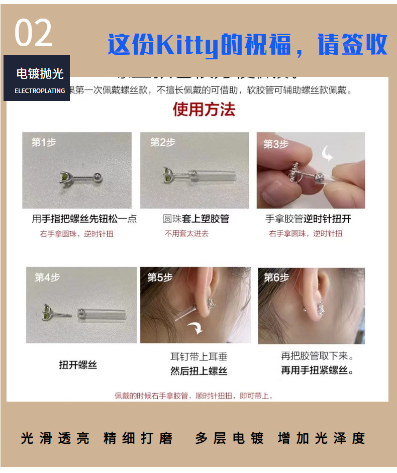 S999純銀KT猫ネジピアス女性用甘くて小さくて可愛いです。
