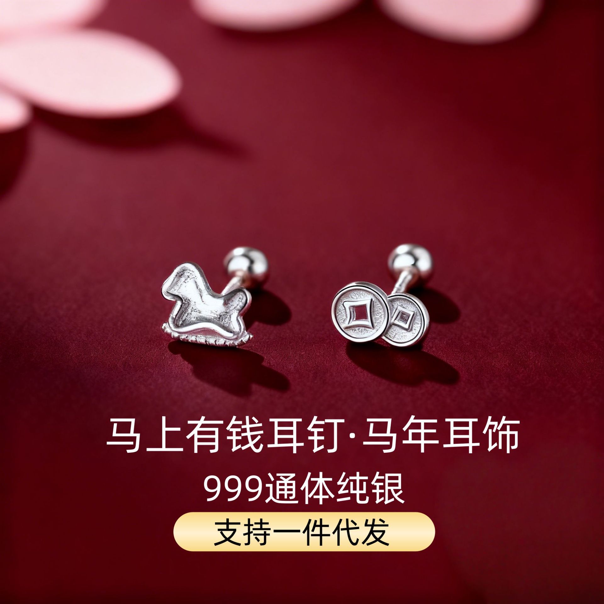 999纯银马上有钱耳钉女轻奢高级感马年新款拧螺丝养耳洞耳钉饰品