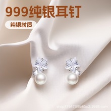 S999純銀人魚姫パールイヤリング女性用韓国版ニッチファンタジーライトラグジュアリー真円フランス風高級イヤリング卸売