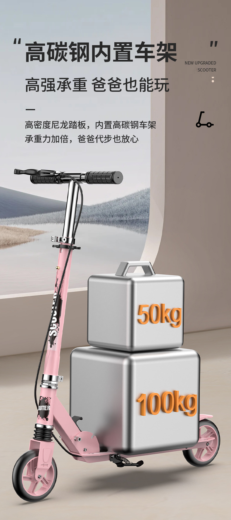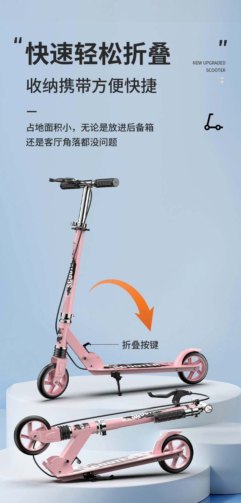 都市の二輪は大人のスケートボードの子供を代行して折り畳みます。