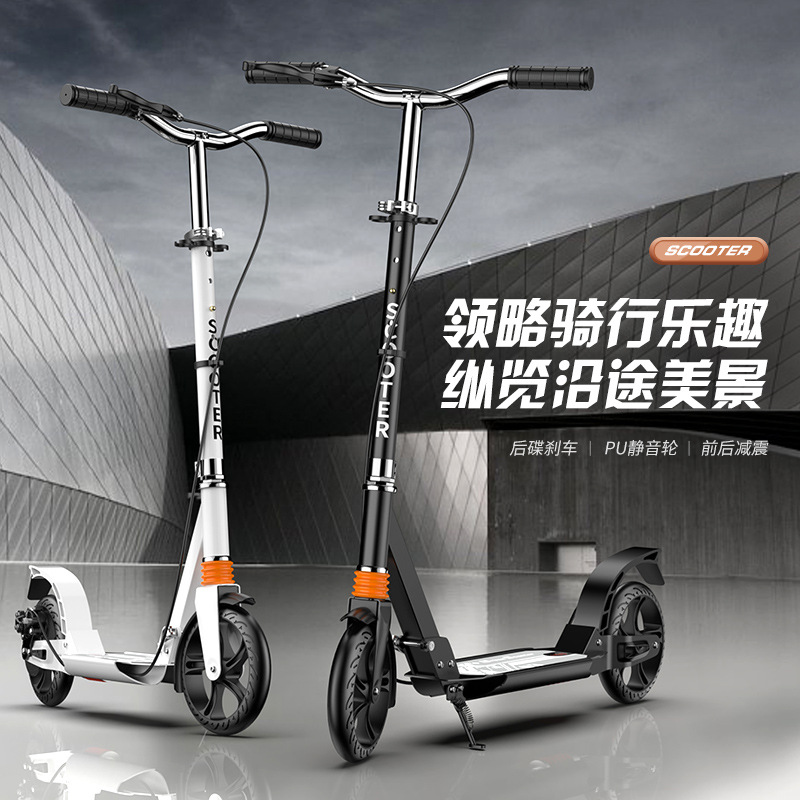 国境を越えた大人のスケートボードは、折り畳み可能なディスクブレーキ制震スクーターのスクーターのポータブルスクーターの屋外で乗ることができる