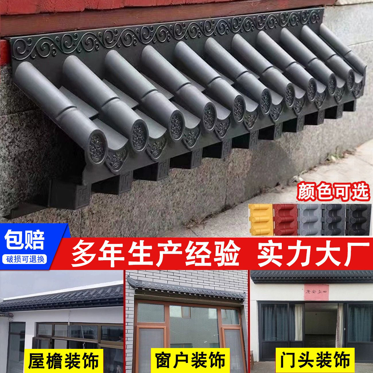 合成树脂瓦具有颜色持久、质轻、自防水、坚韧、保温隔热、隔音、耐腐蚀、抗风防震、抗冰雹、抗污、绿色环保、防火、绝缘、安装方便等优点,而且造型美观立体感强,颜色极具中国元素,使得它被广泛应用于各类永久建筑屋面装饰,尤其目前国内大力推广的“平改坡”工程。