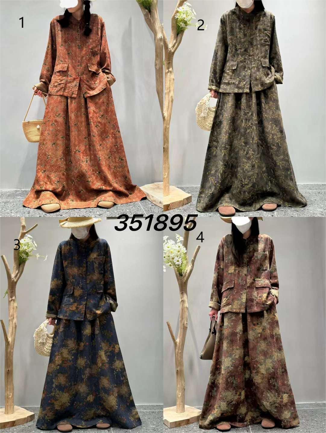 Cz351895女性カジュアルスーツ2024年新型シンプルプリントレトロ長袖長袖上着半スカート