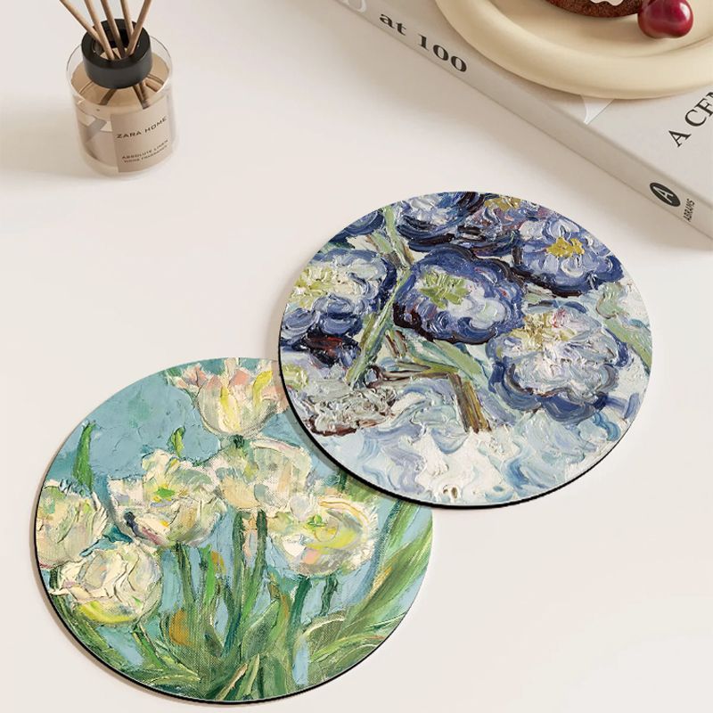 レトロなアメリカンスタイルのテーブル断熱マット、油絵風の丸型小食器マット、洗濯不要、吸水速乾、ボウルマット、プレートマット、カップマット