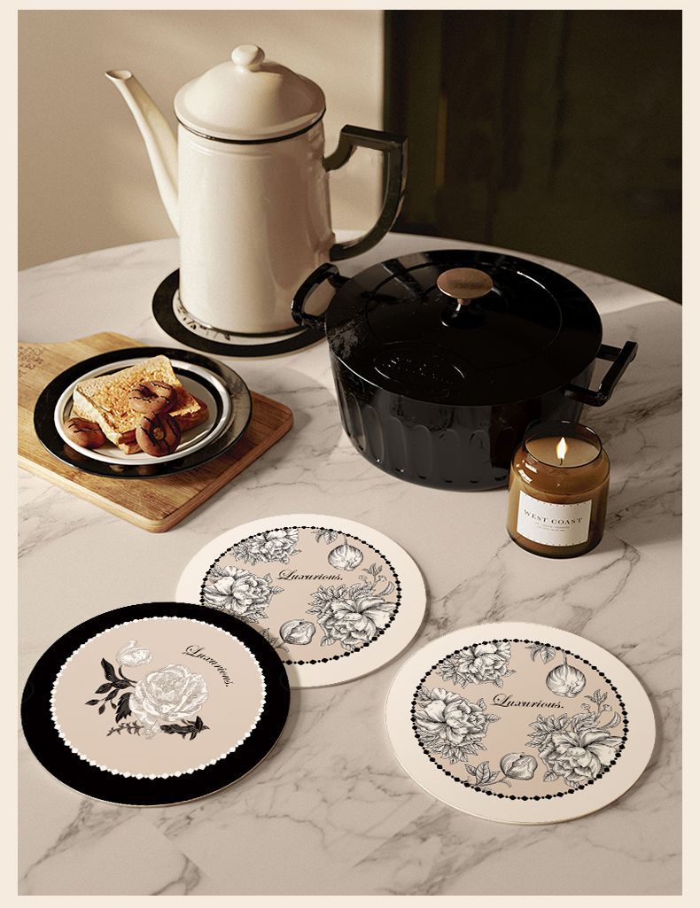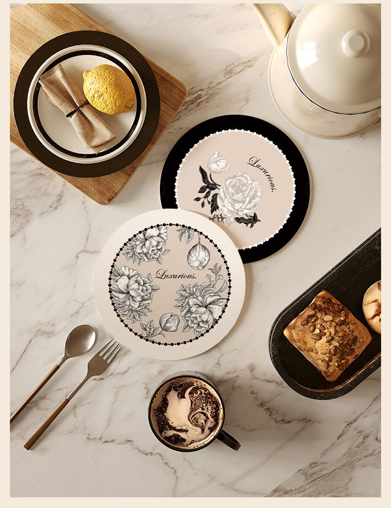 軽奢な花柄の高温耐性のあるダイニングテーブルプレート、ins風の泥カップ、珪藻土吸水断熱プレースマット、火傷防止マット、家庭用