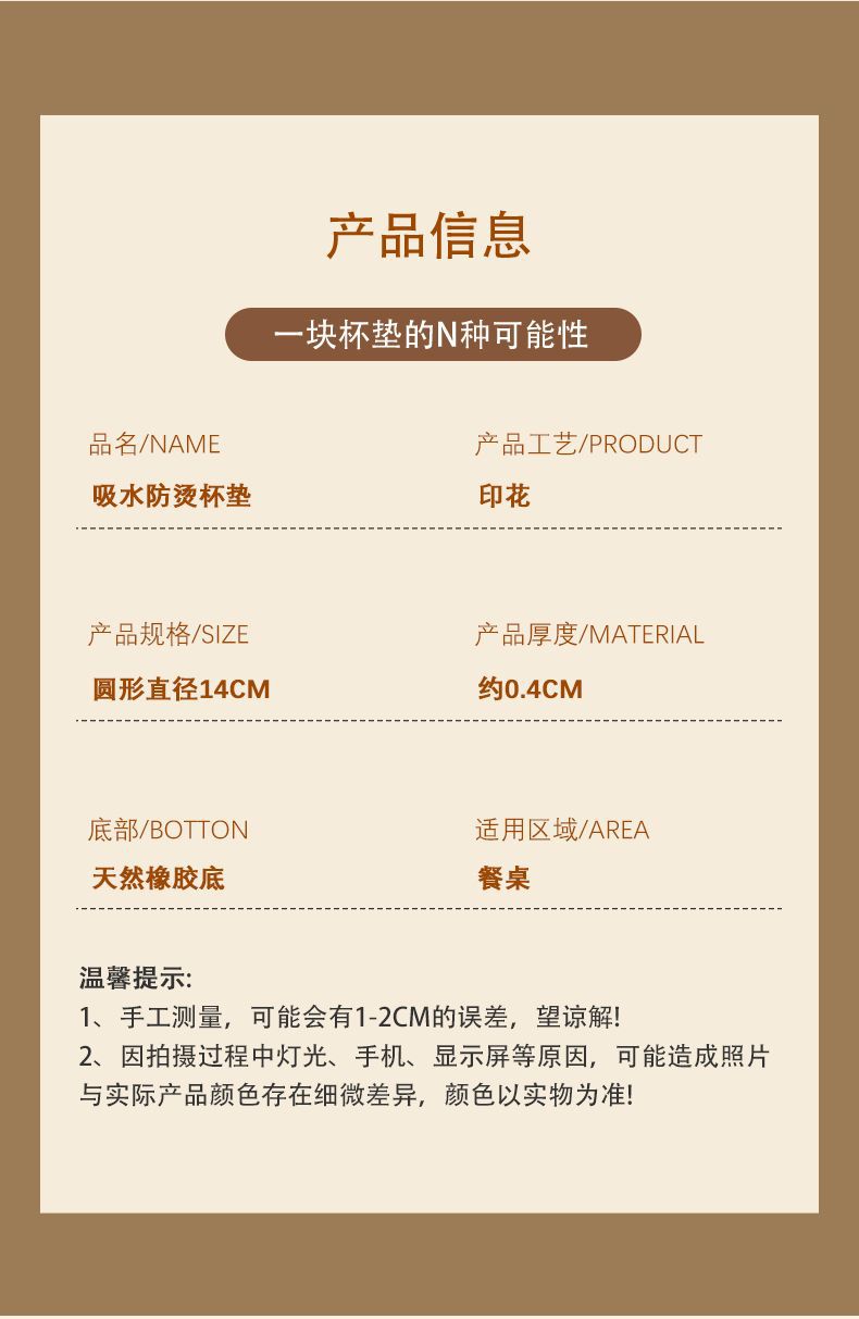 吸水断熱マットテーブルマット熱くて滑り止めのあるコースターの高級感があります。