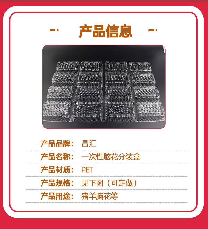 卸売使い捨て豚脳羊脳包装箱精洗急速冷凍花分包装箱16個入り透明プラスチック箱高透明