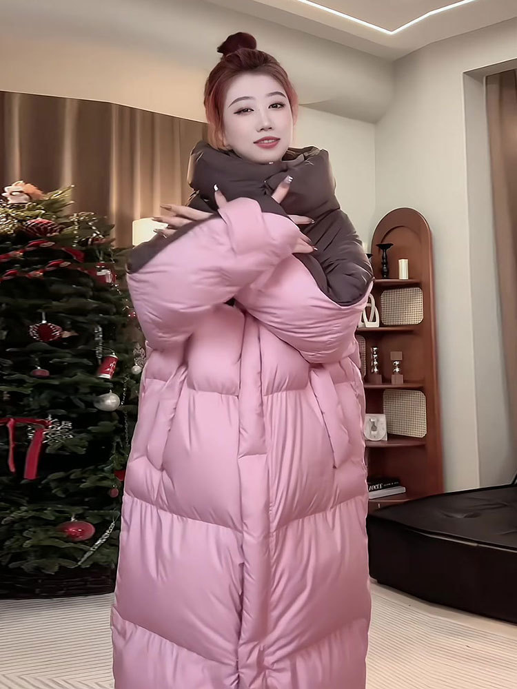 2025年の冬の新型の綿服の中で長いタイプの韓国版の綿服のコートは厚くて保温がゆったりしています。