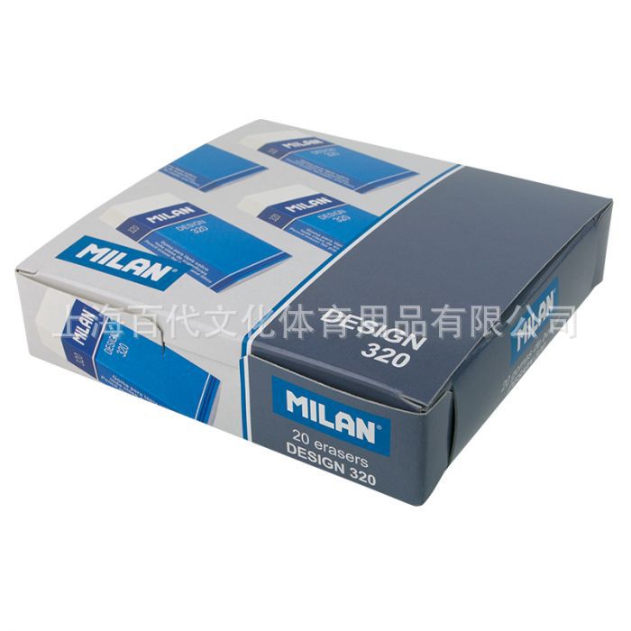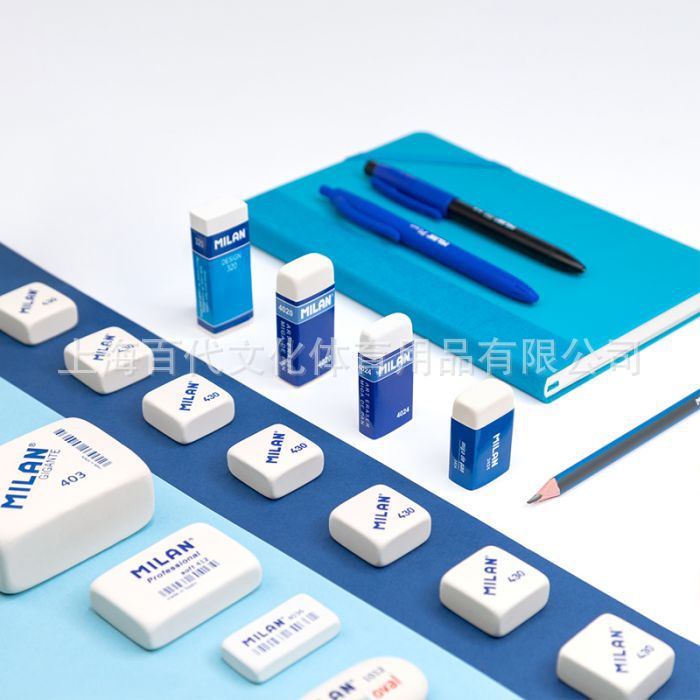 白色塑料nata®橡皮擦,用于擦除任何表面的铅笔笔划。单独包装。蓝色纸箱套。橡皮擦尺寸:6.1 x 2.3 x 1.2厘米。米兰橡皮擦自1918年以来在西班牙制造。