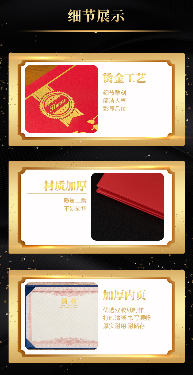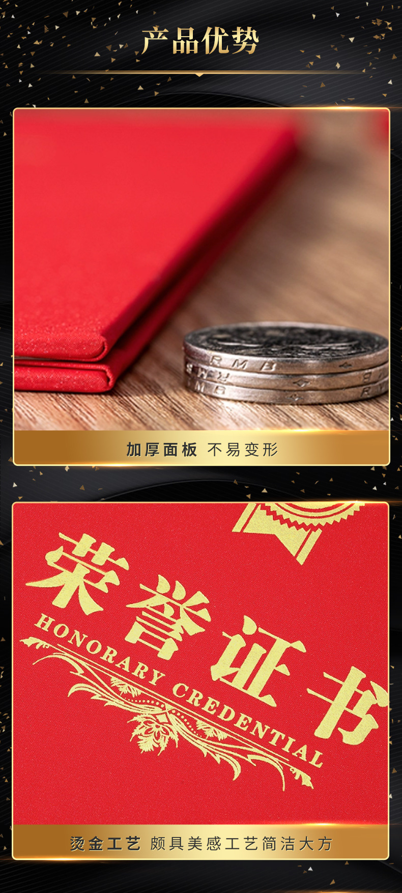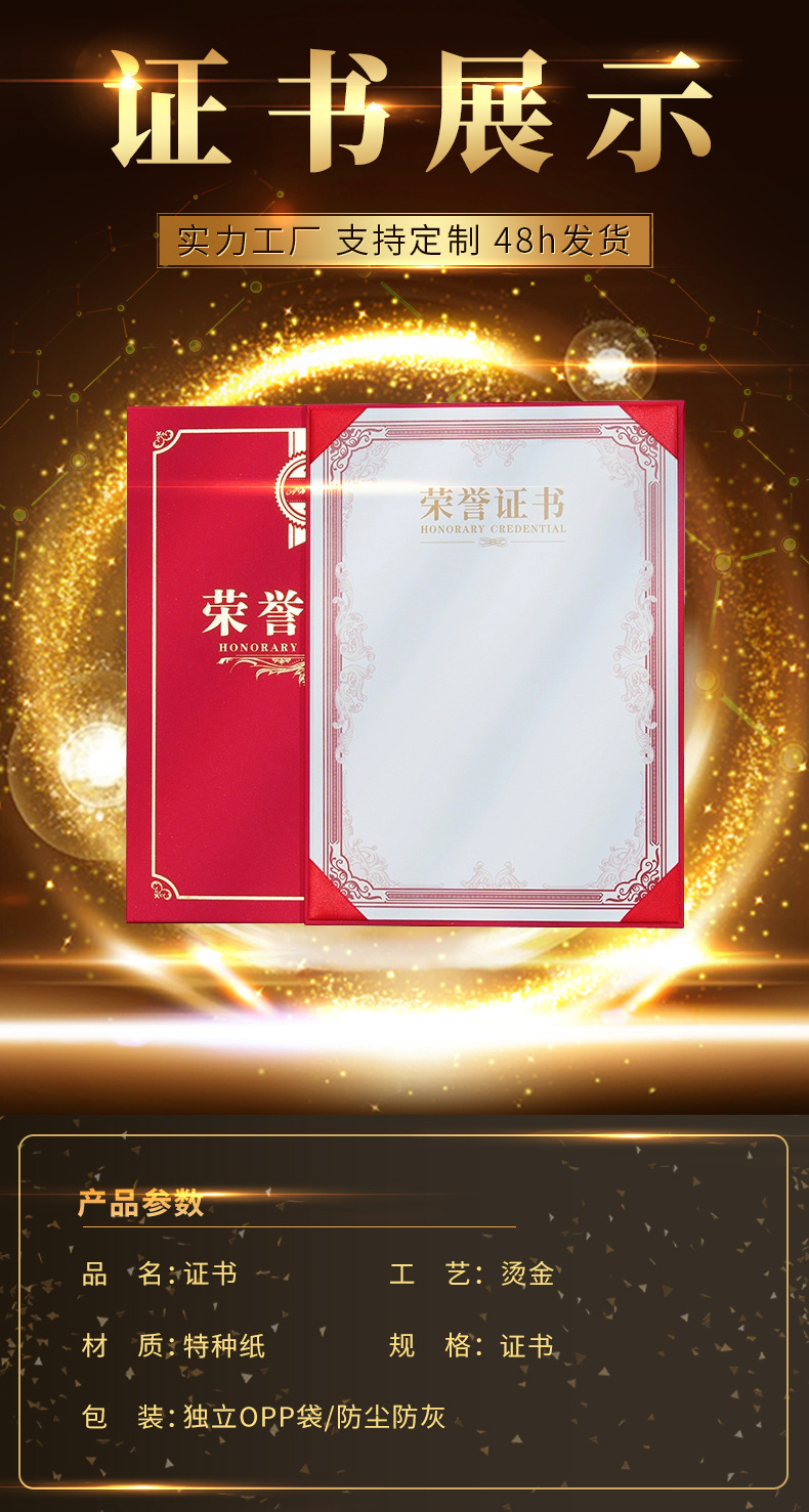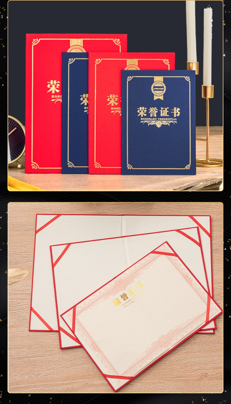 名誉証明書カスタム箔押し二重テープ内ページ賞状紙内芯カスタマイズ可能企業ロゴ証明書内ページcx