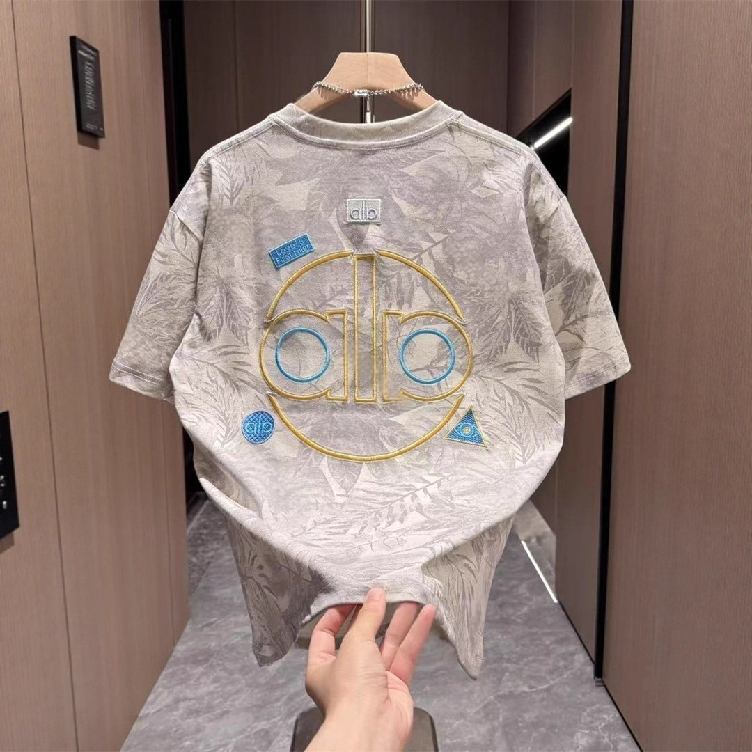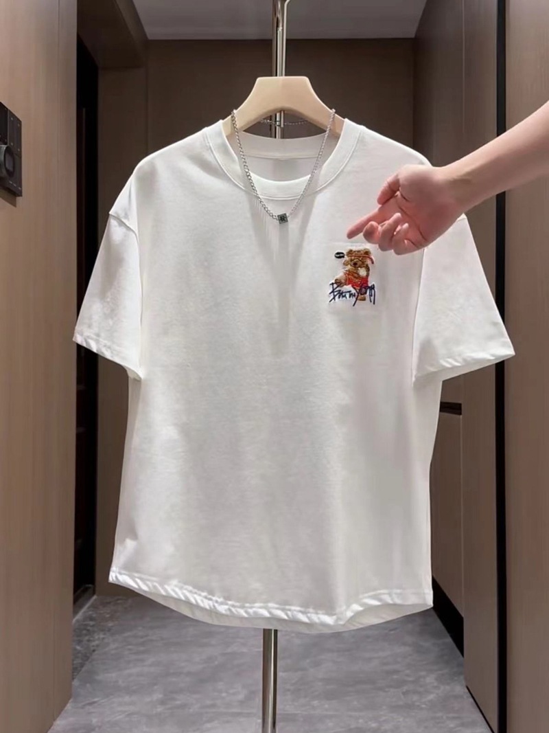 トレンディなブランドハンサムストリート刺繍 Tシャツ 2025 夏の新ファッションプリント半袖ワイドバージョンメンズカジュアル半袖