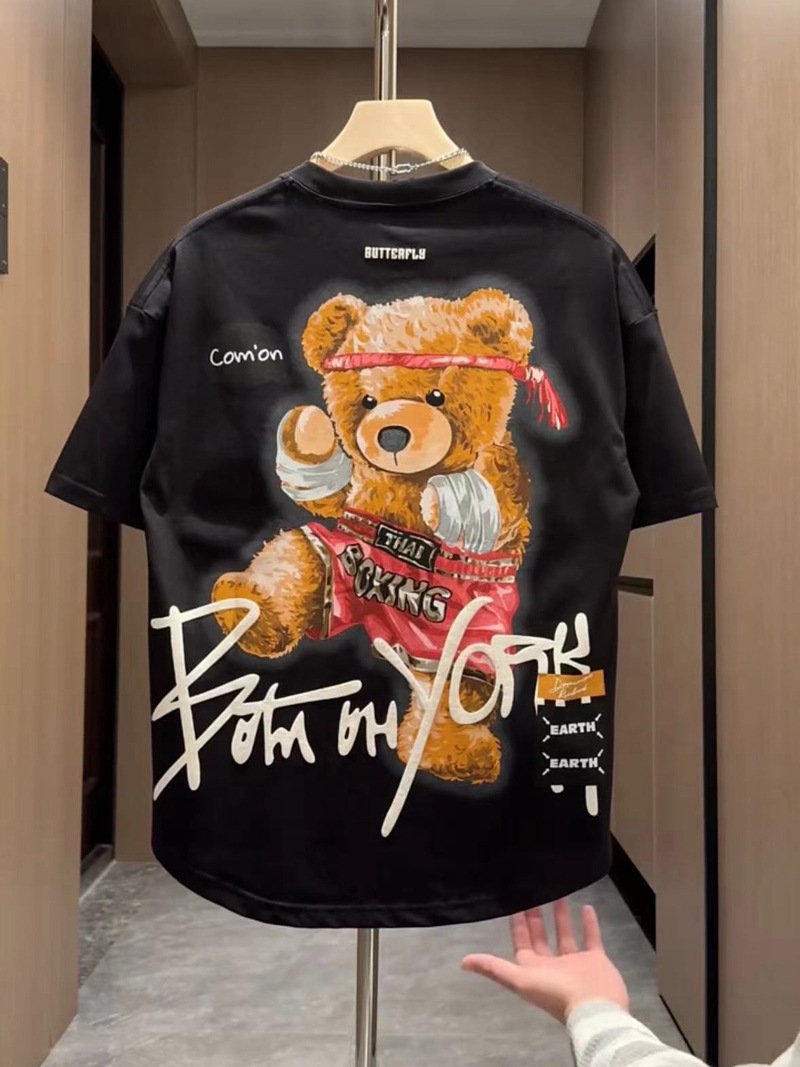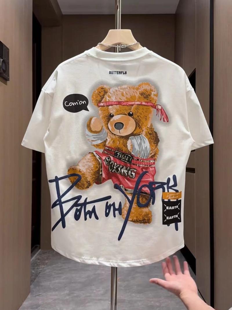 2024年夏の新型男性百合熊彩色プリント半袖tシャツ上着半袖男潮帅