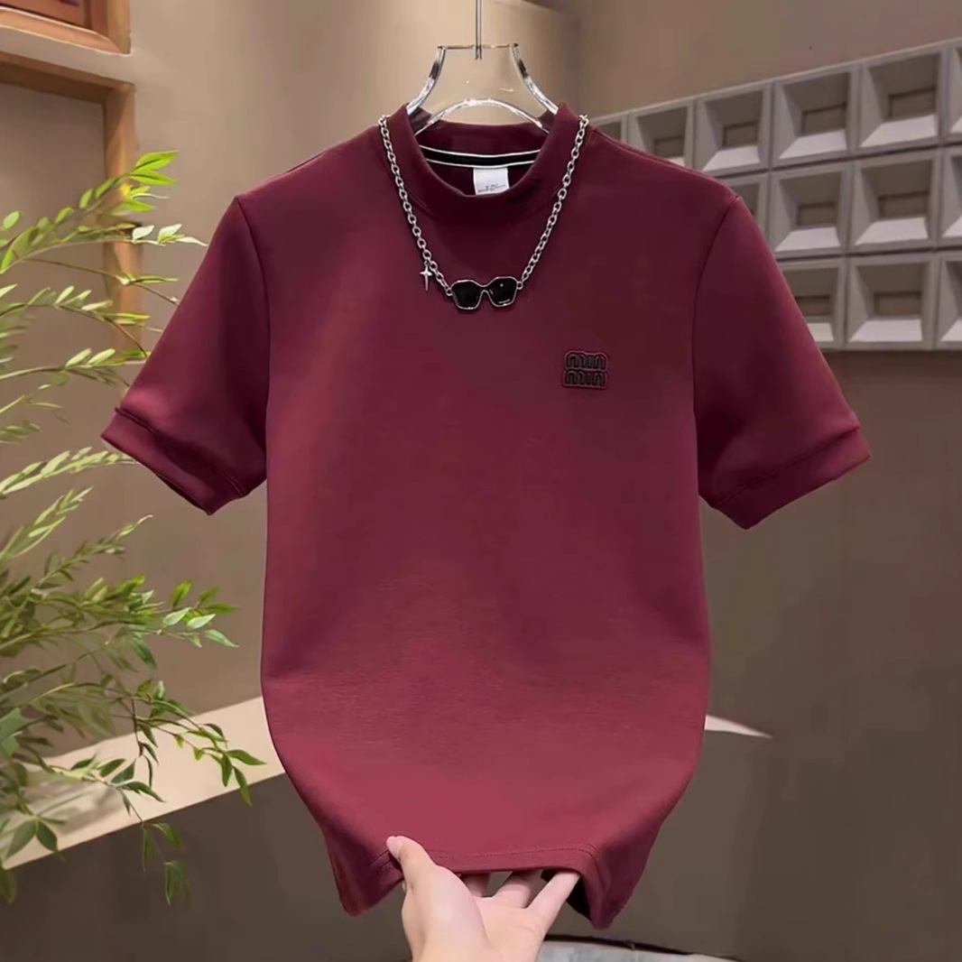 2025 夏高品質文字刺繍抗シワ無地半袖 Tシャツメンズスリムヨーロッパ Tシャツボトリングシャツトレンディ