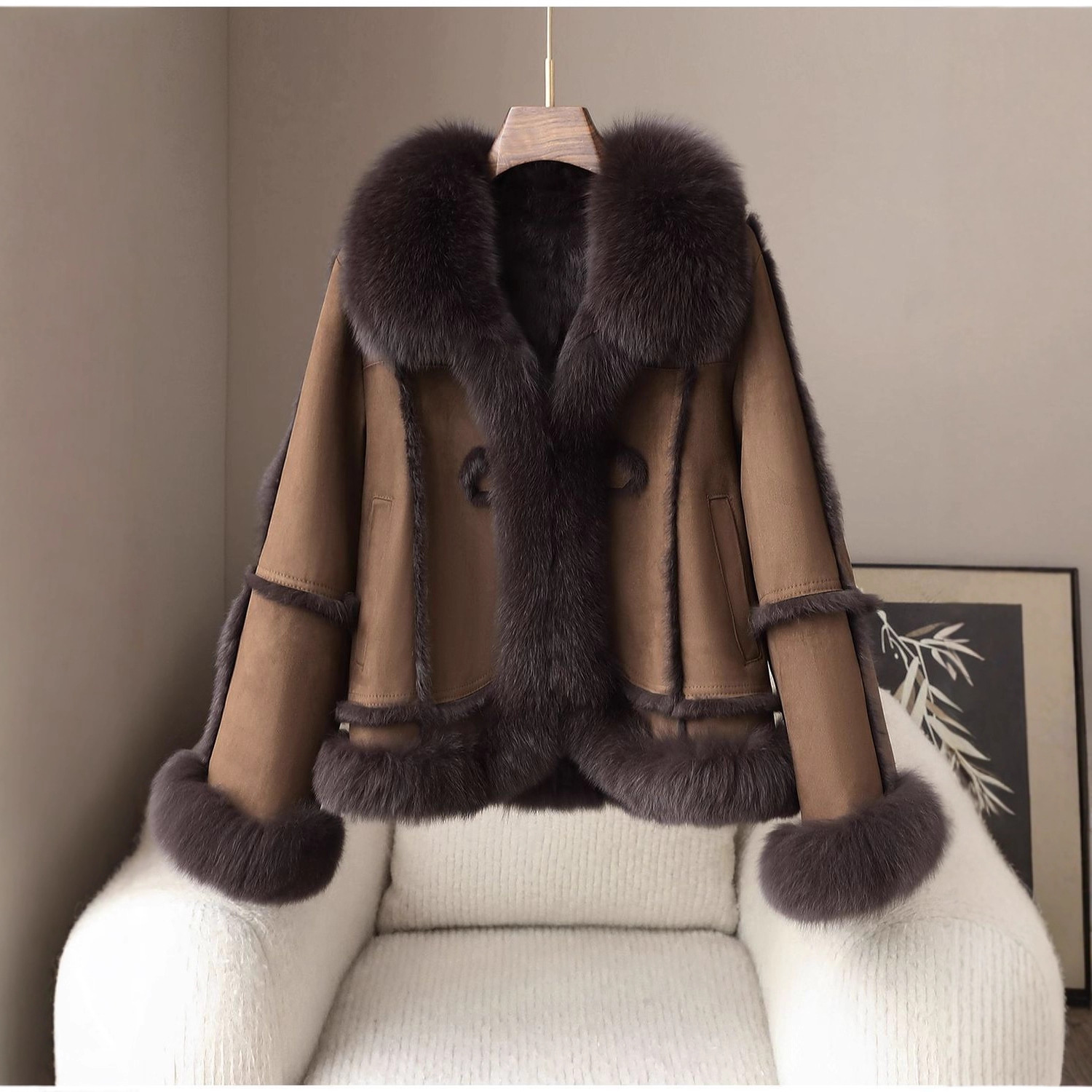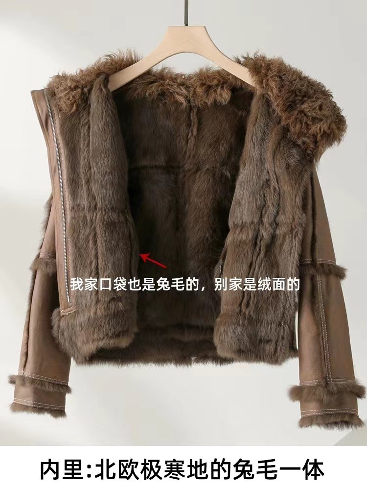 2025秋冬新品工厂现货美拉德风兔毛皮毛一体狐狸毛领女式皮草外套