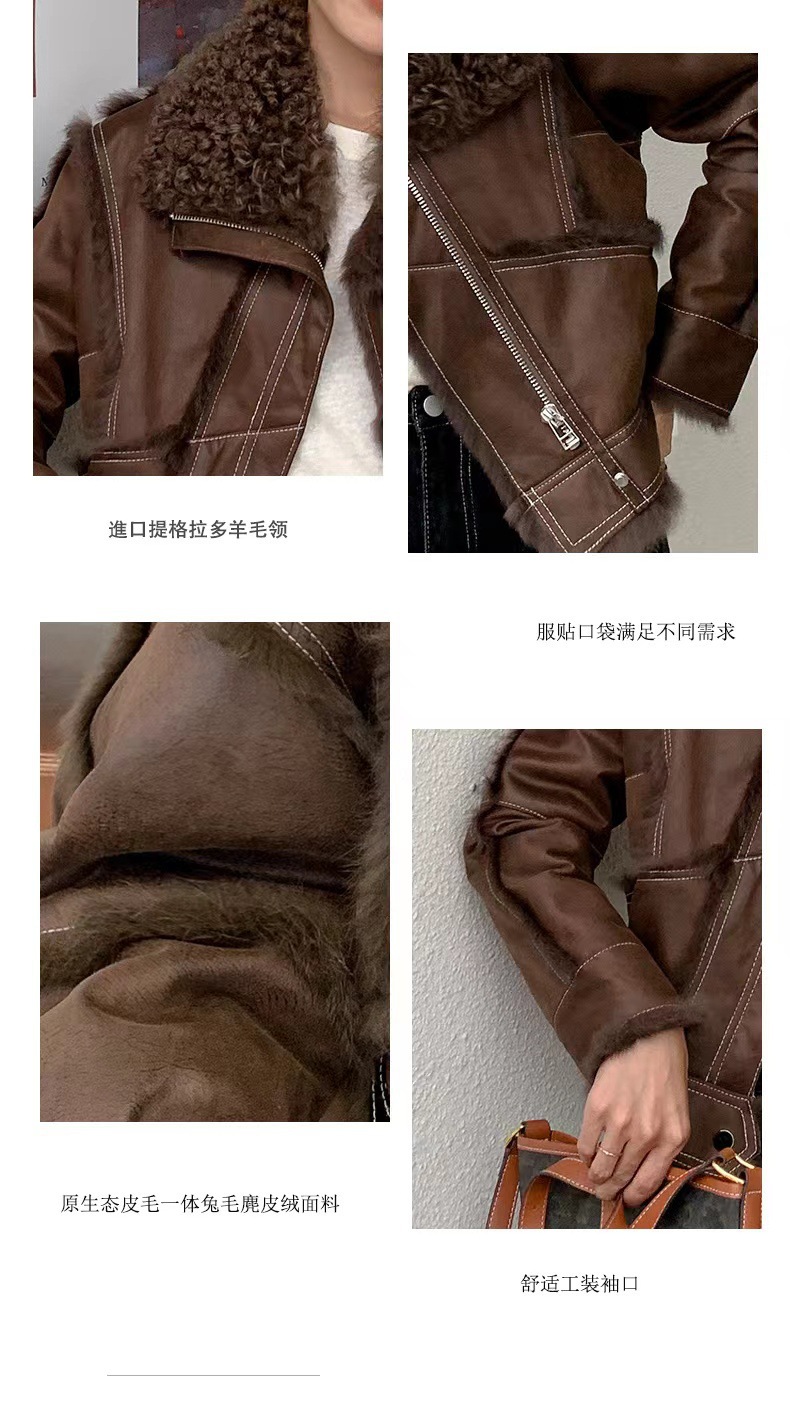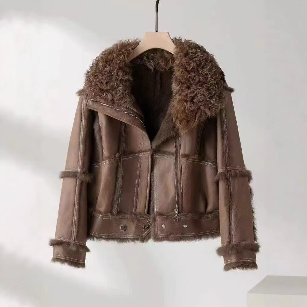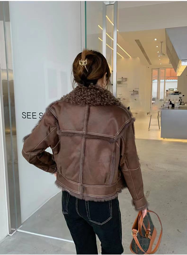 2025新款跨境外贸款时尚高端款滩羊毛女短款翻领加厚保暖皮草外套