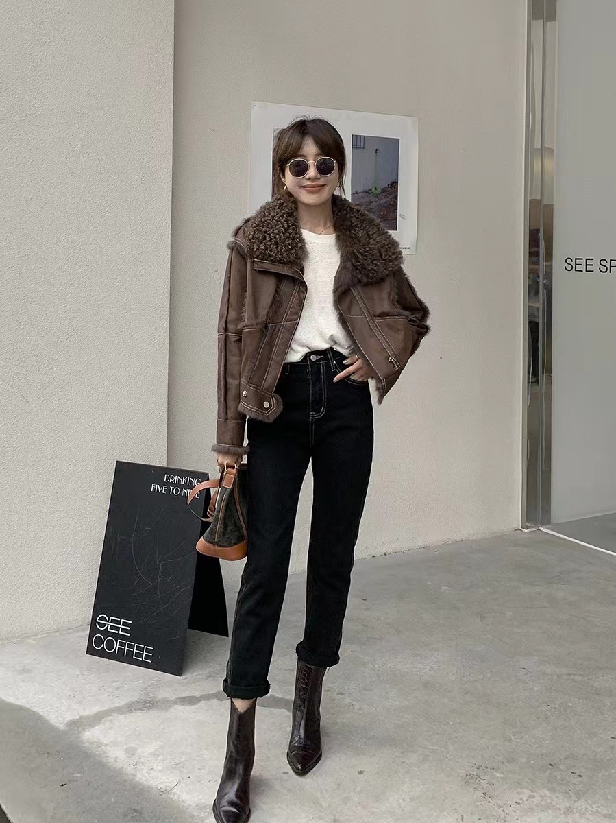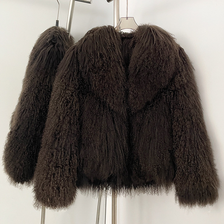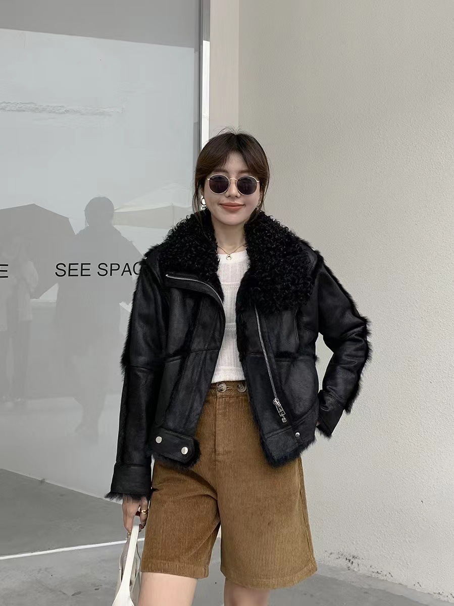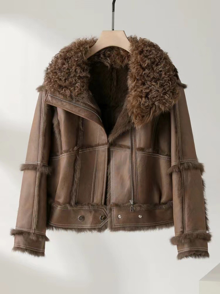 2025新款跨境外贸款时尚高端款滩羊毛女短款翻领加厚保暖皮草外套