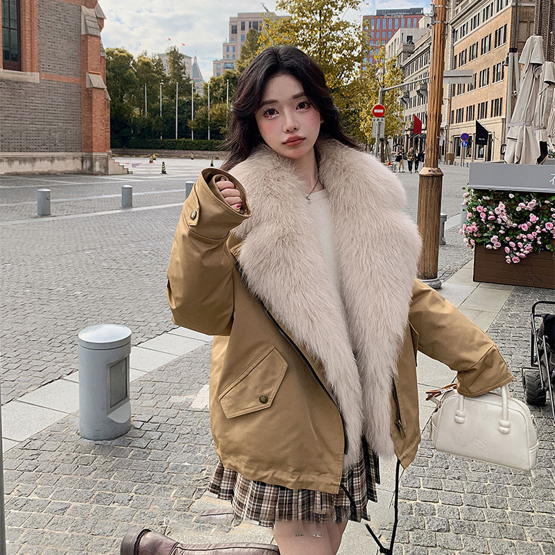 スイートクールパーカーダウンジャケットレディースワークウェアカジュアルファーコートフォックスファー襟取り外し可能な厚みのあるダウンライナー